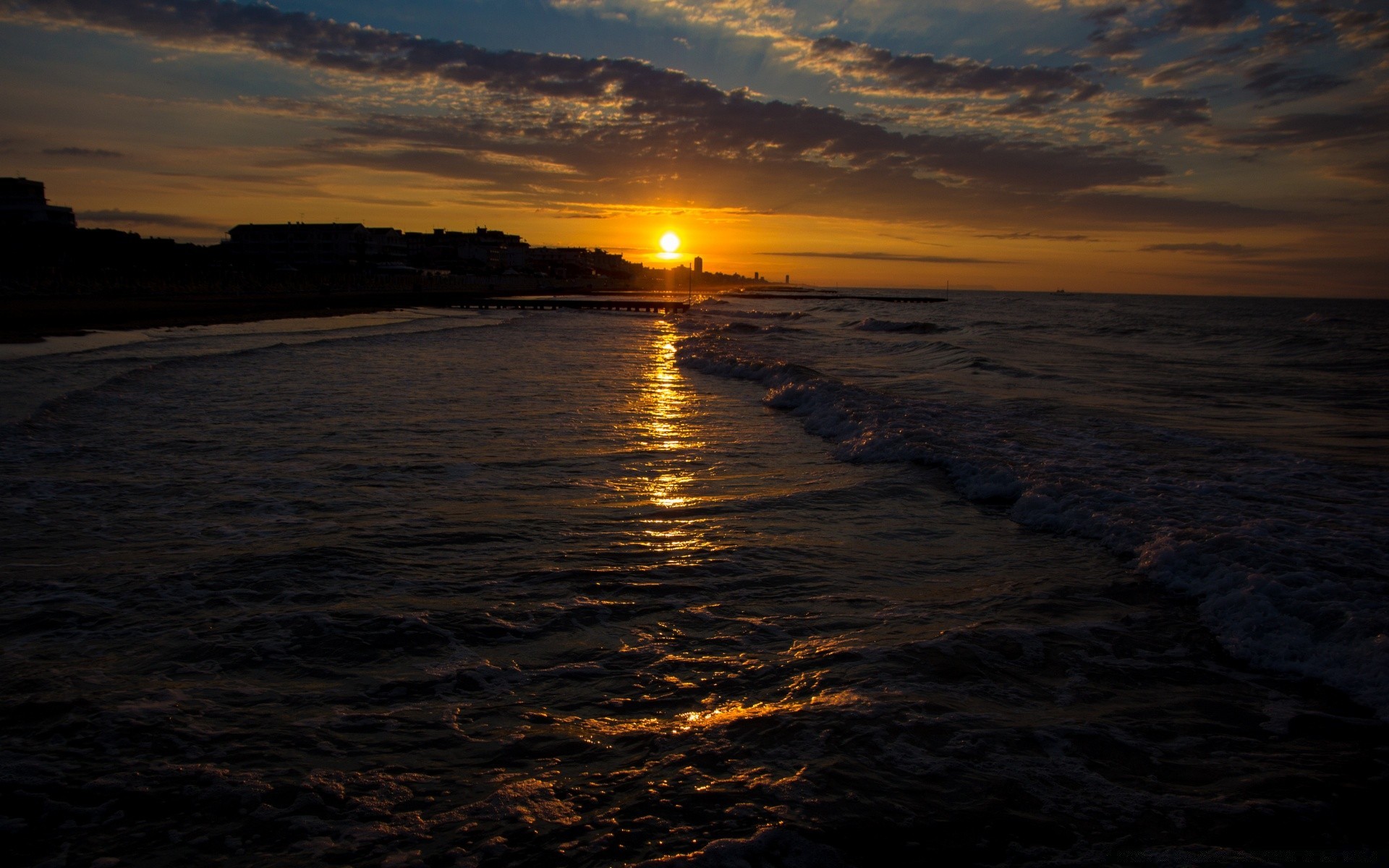 Die Stadt ist überfüllt, die Architektur ist gut, das Licht der Lichter und das Blau des Wassers sind gut