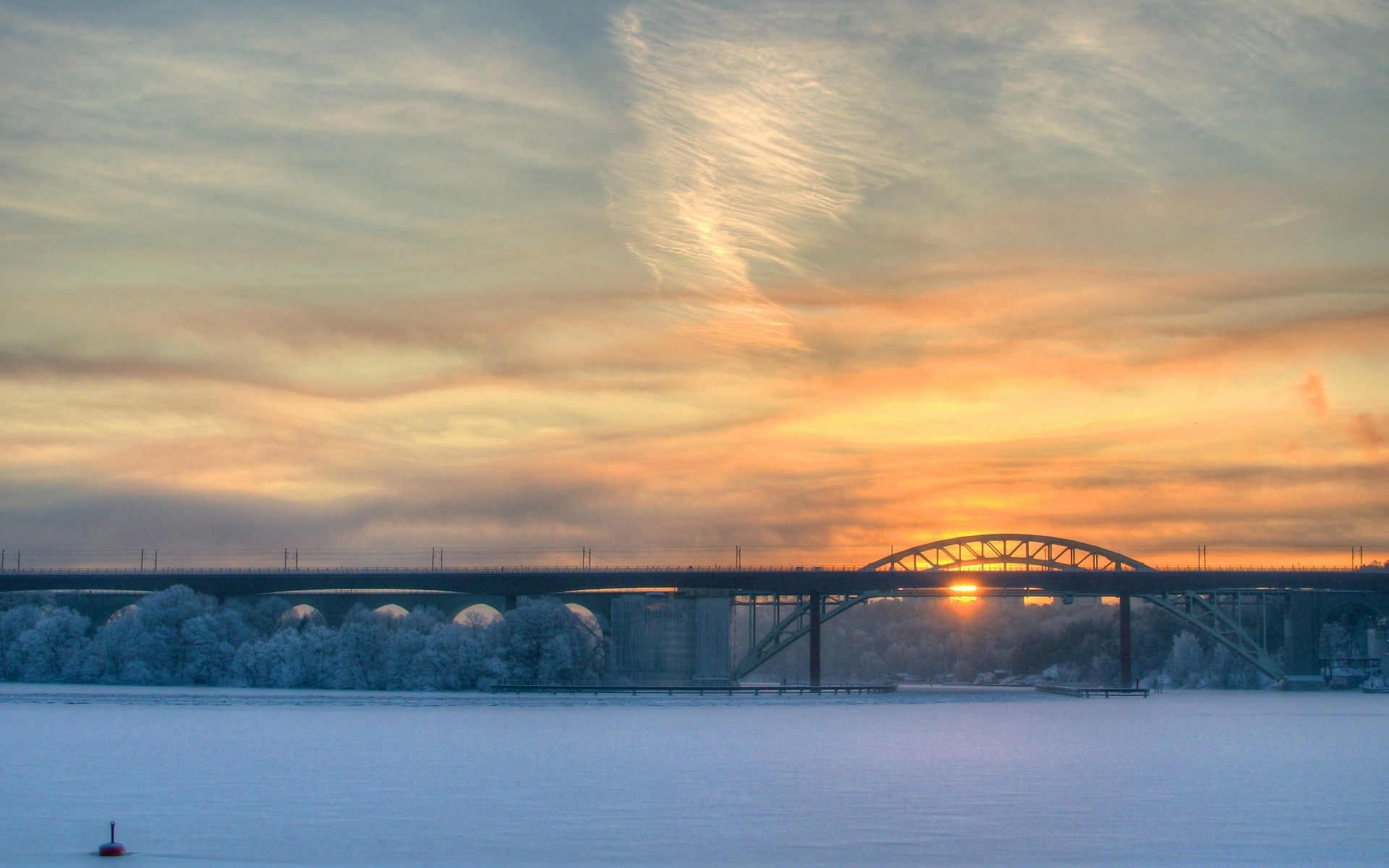 Eisenbahnpfosten auf Sonnenuntergang Hintergrund. Winterlandschaft