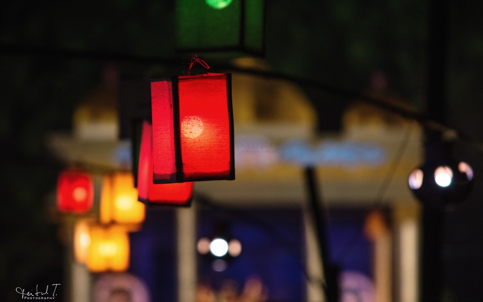 Straßenbeleuchtung mit bunten Lampen