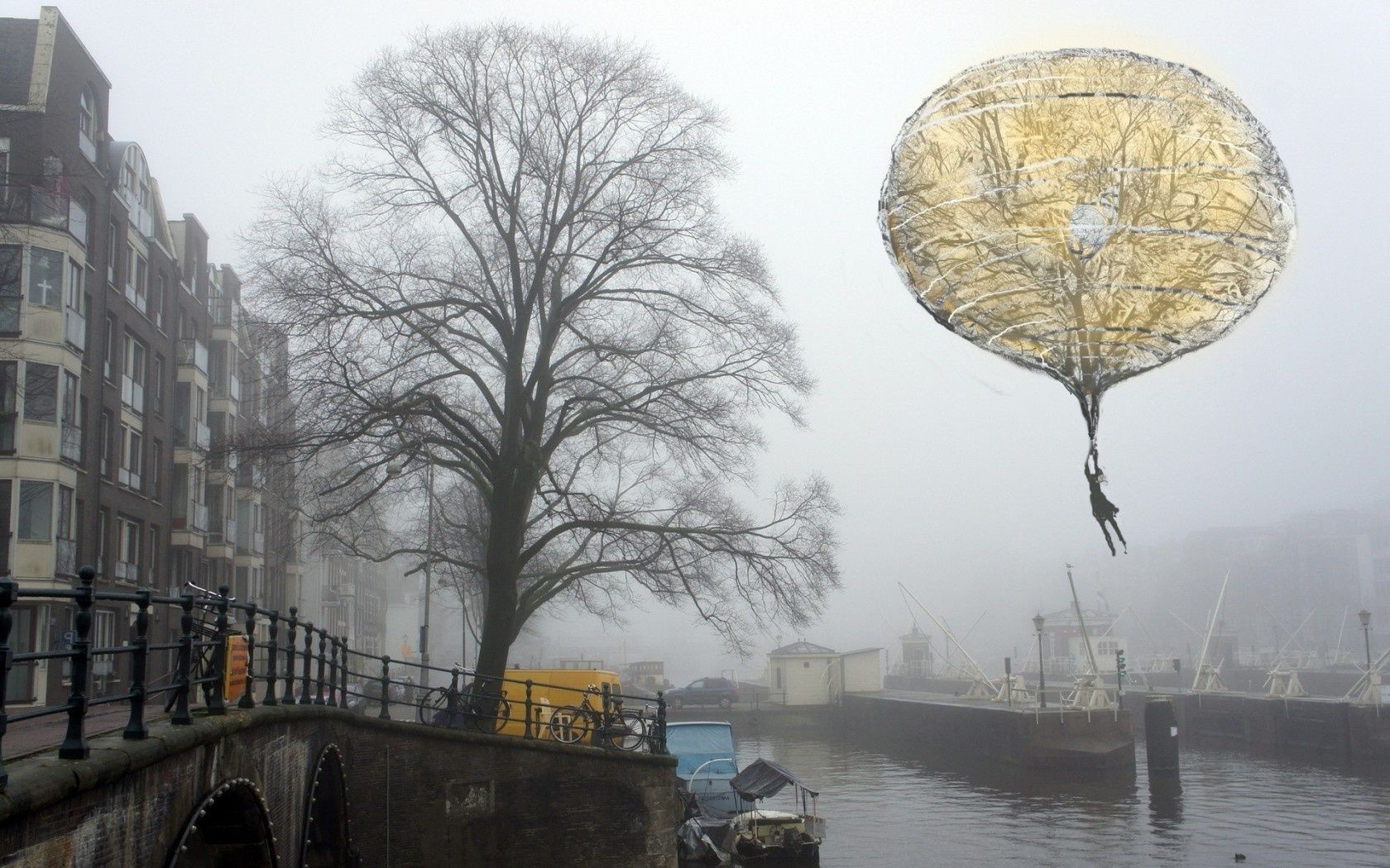 Herz aus Wasser mit einem Bild von Bäumen und Gras