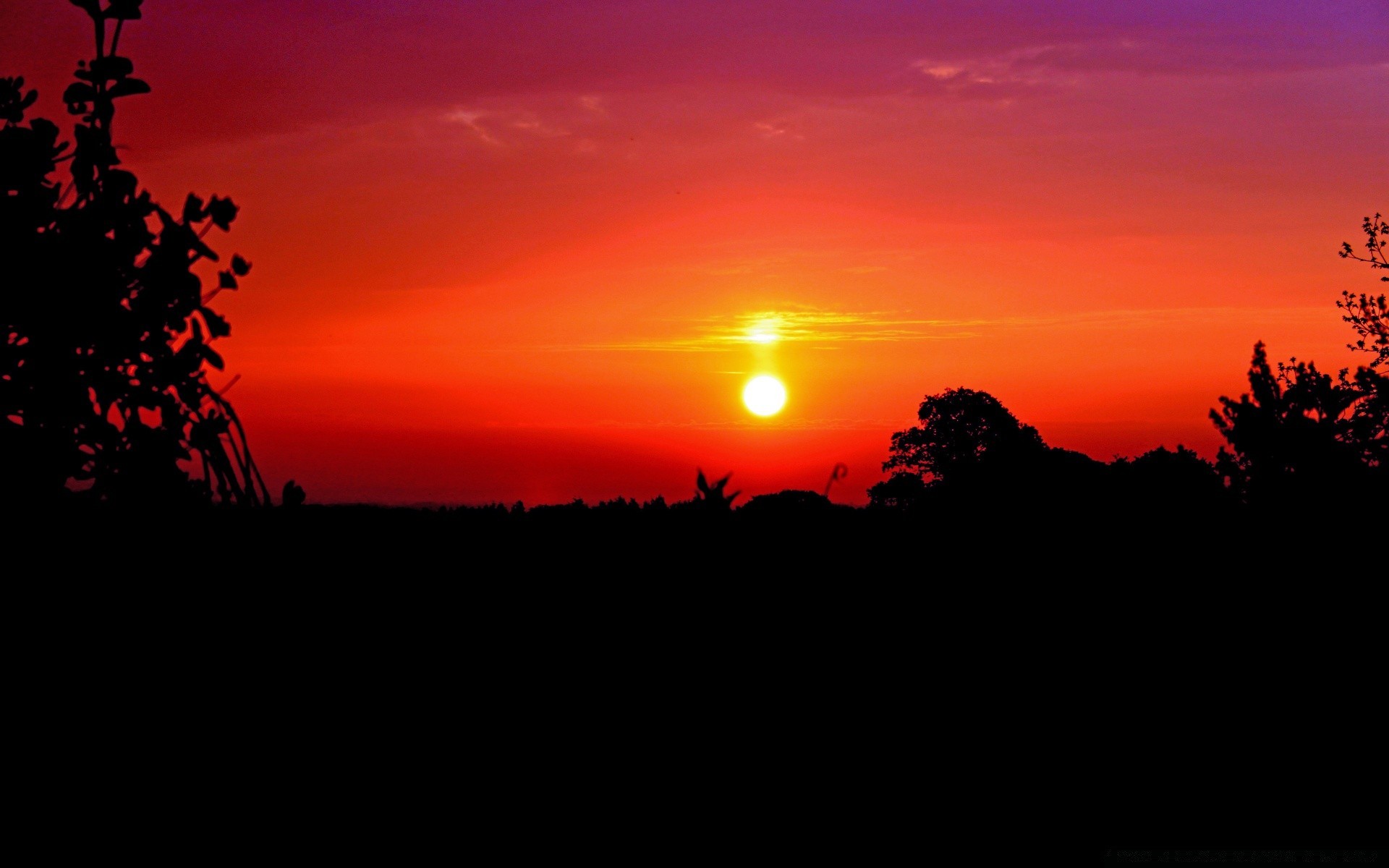 Sonnenuntergang vor dem hintergrund des feurig-orangefarbenen himmels