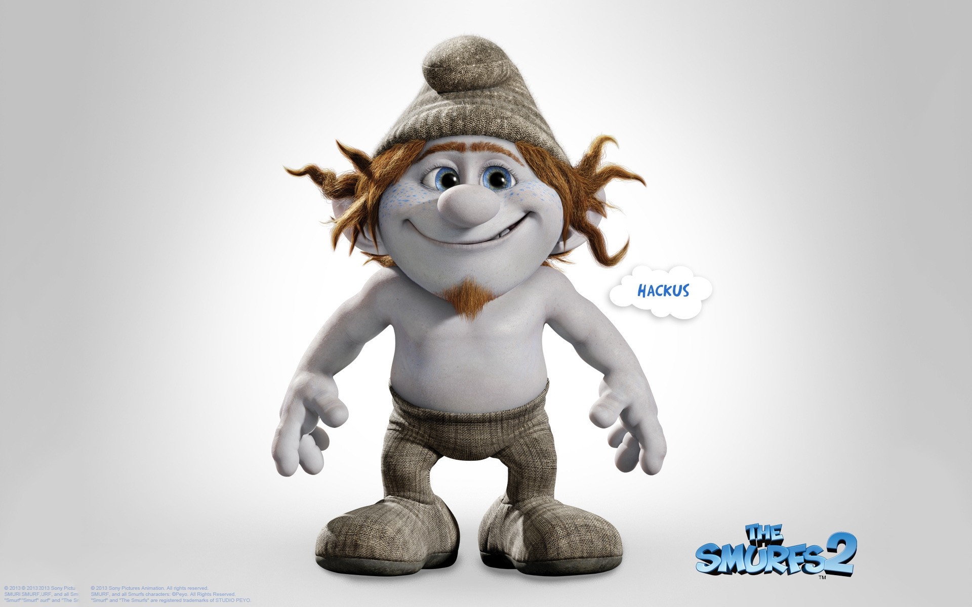 Vier Schlümpfe stehen in einer Reihe. Blonde. Der Kerl mit der Brille. Alter Mann in roten Kleidern