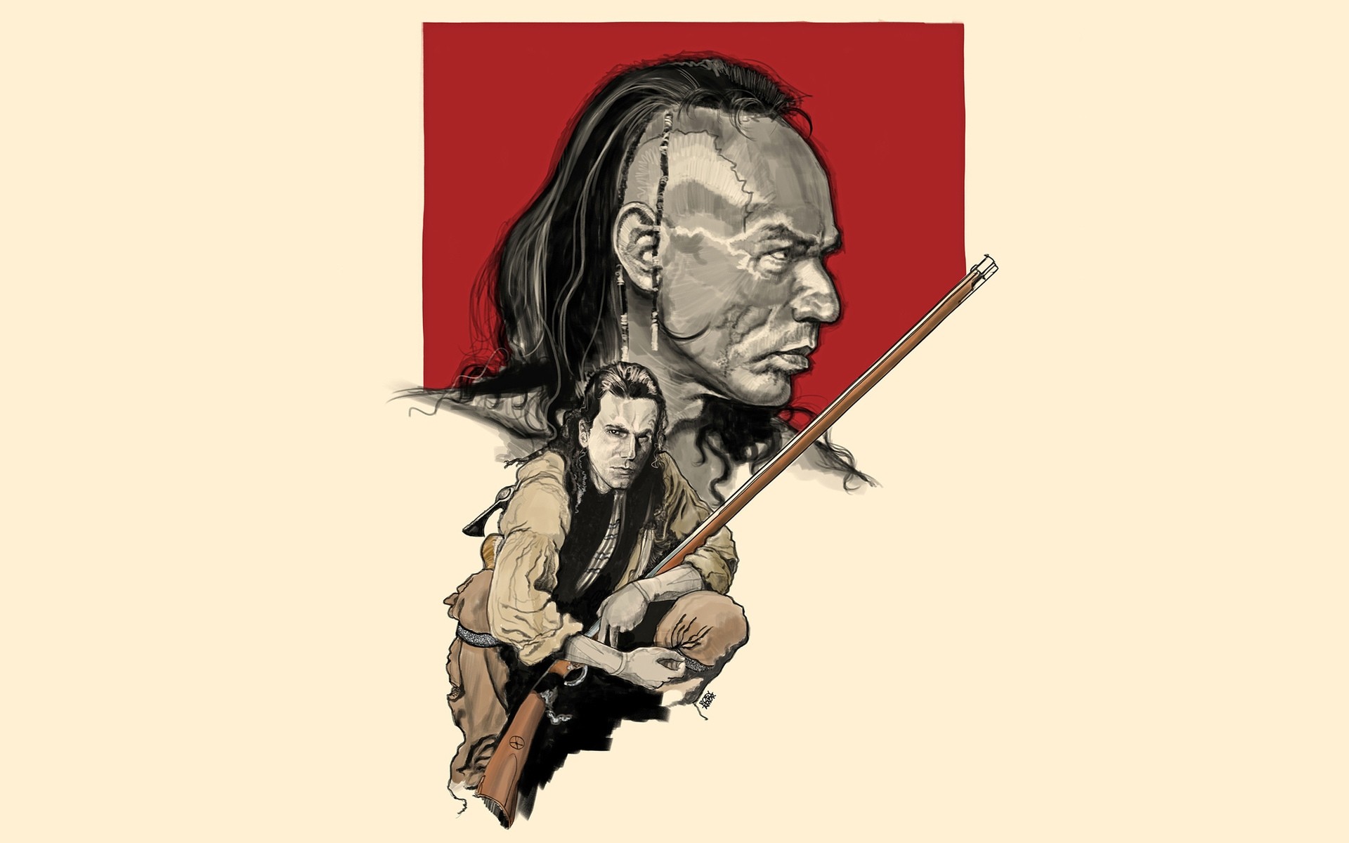Ein Mann mit einer Pistole und einer Krawatte auf dem Profilhintergrund eines anderen Mannes
