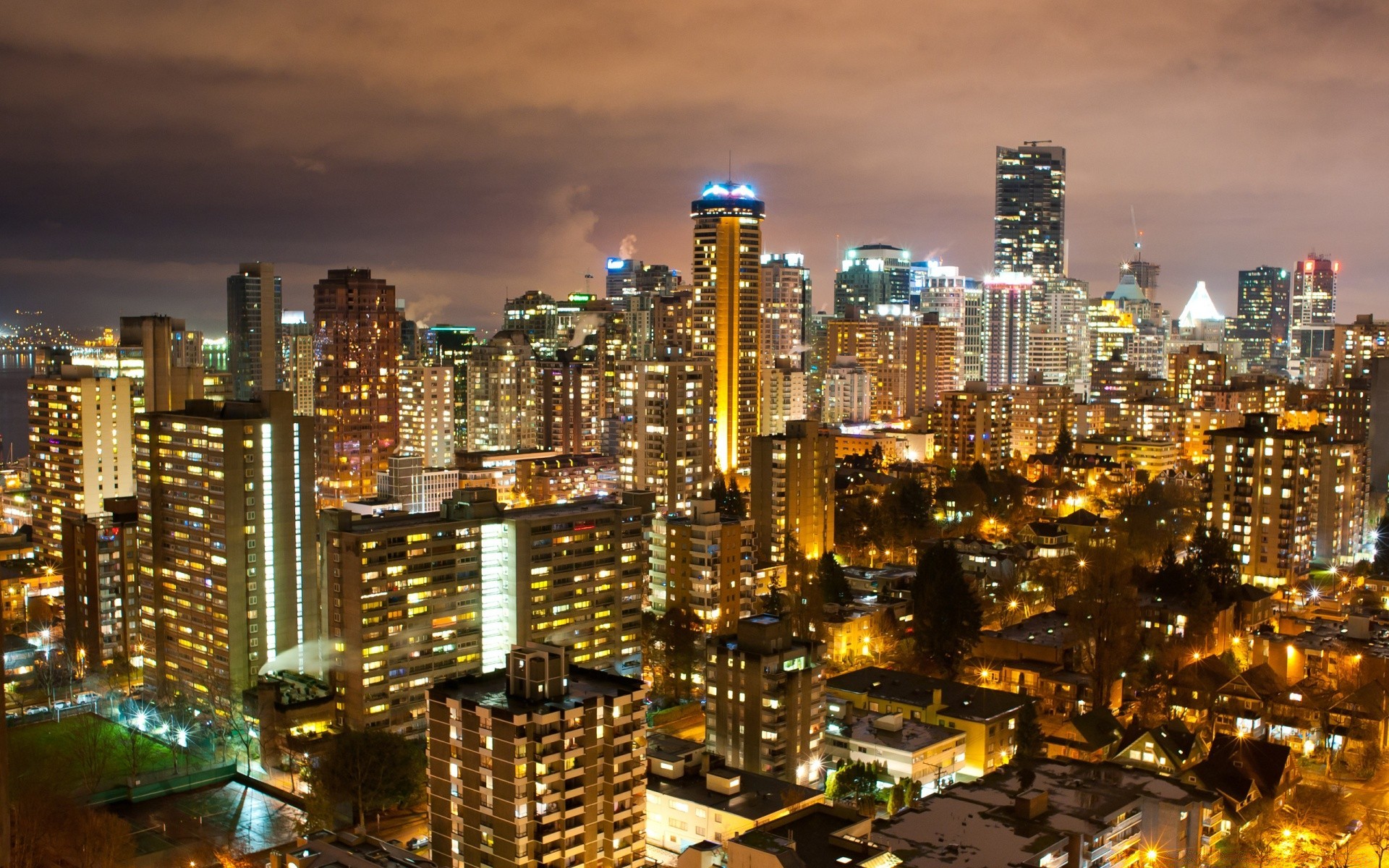 Schöne Stadt bei Sonnenuntergang aus der Vogelperspektive
