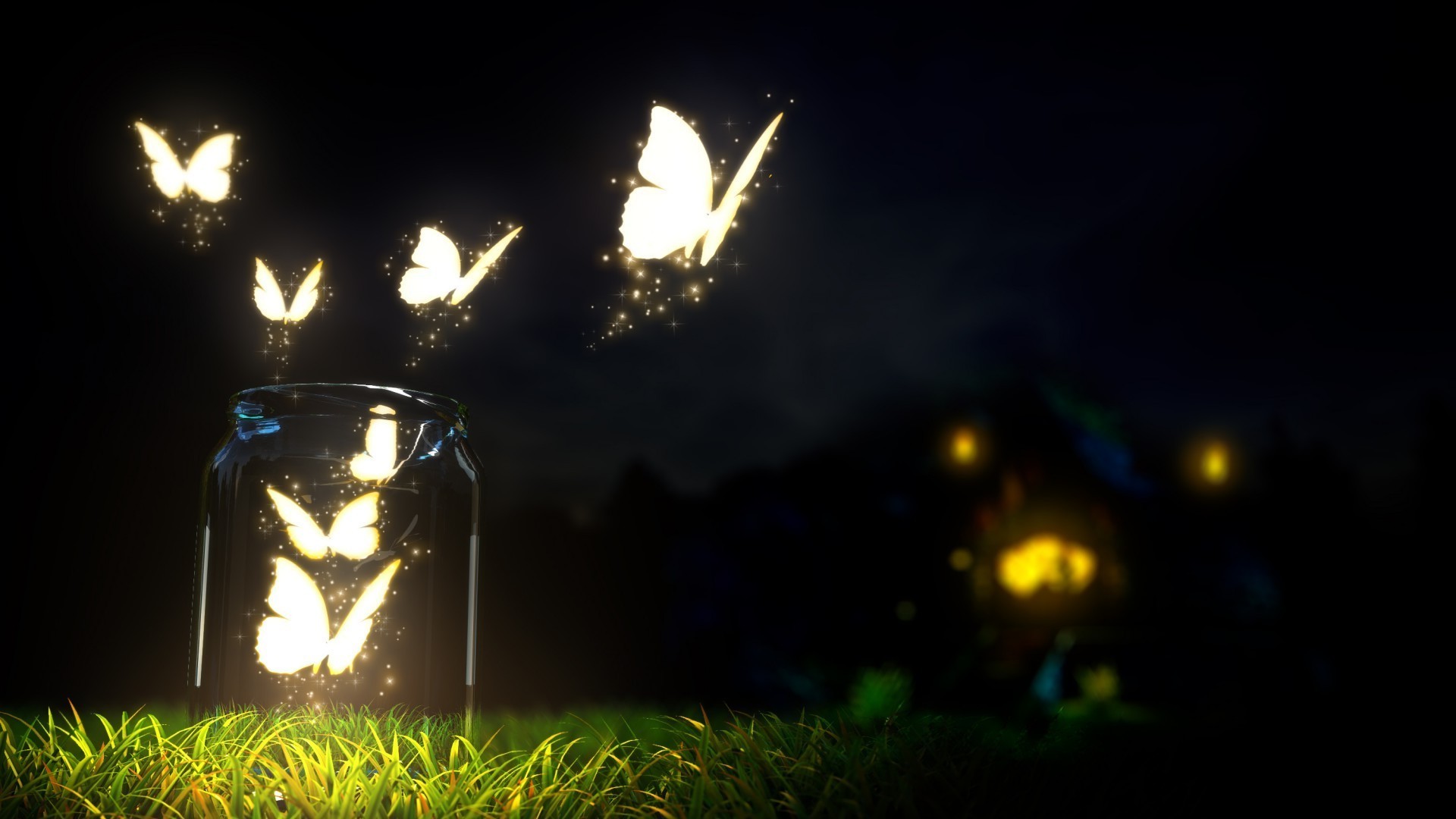 Leuchtende Schmetterlinge sind aus der Dose ausgestiegen