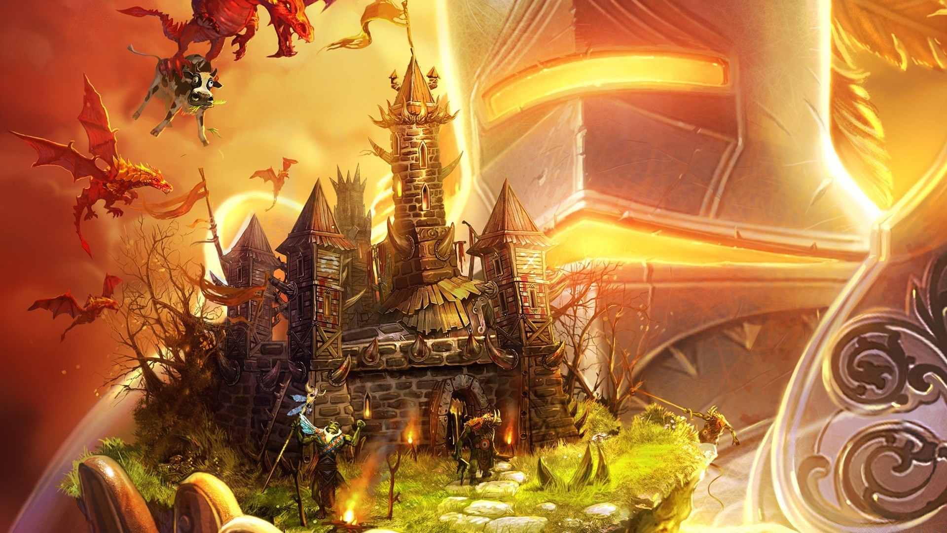 Fantasy-Bild, Drachen über dem Schloss