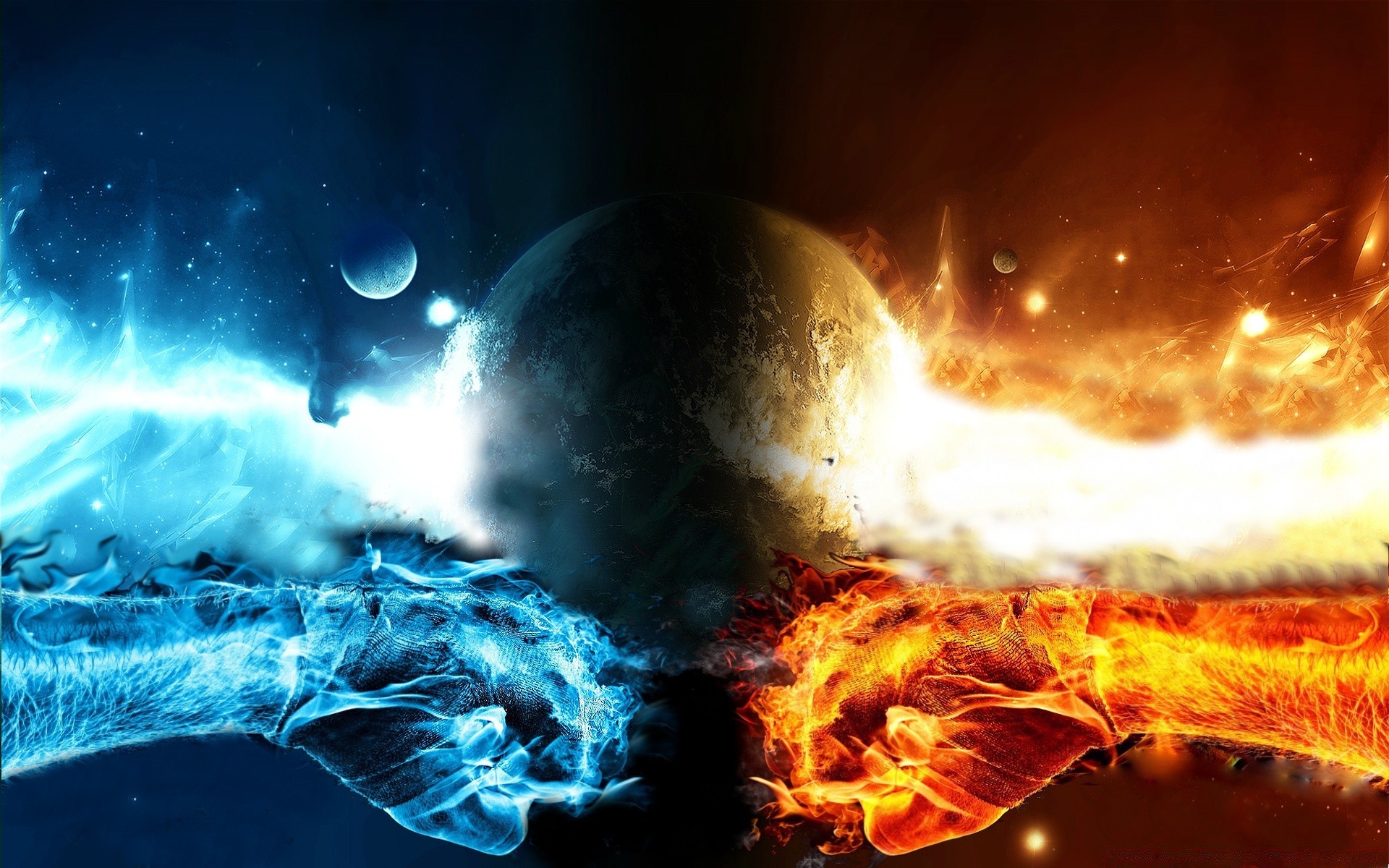 Eine kreative Zeichnung unseres Universums. Eis und Flamme