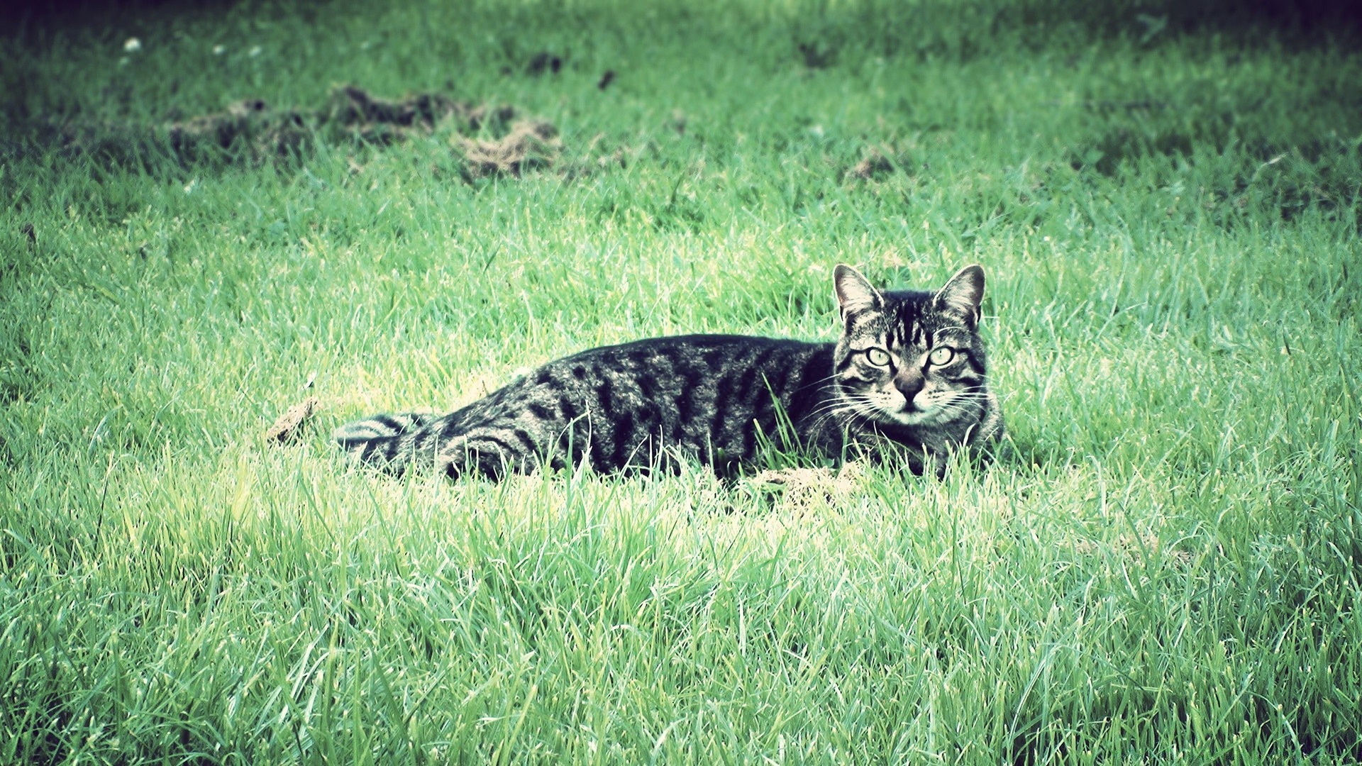Ein wilder tiger liegt im gras vor einem hintergrund von wolken