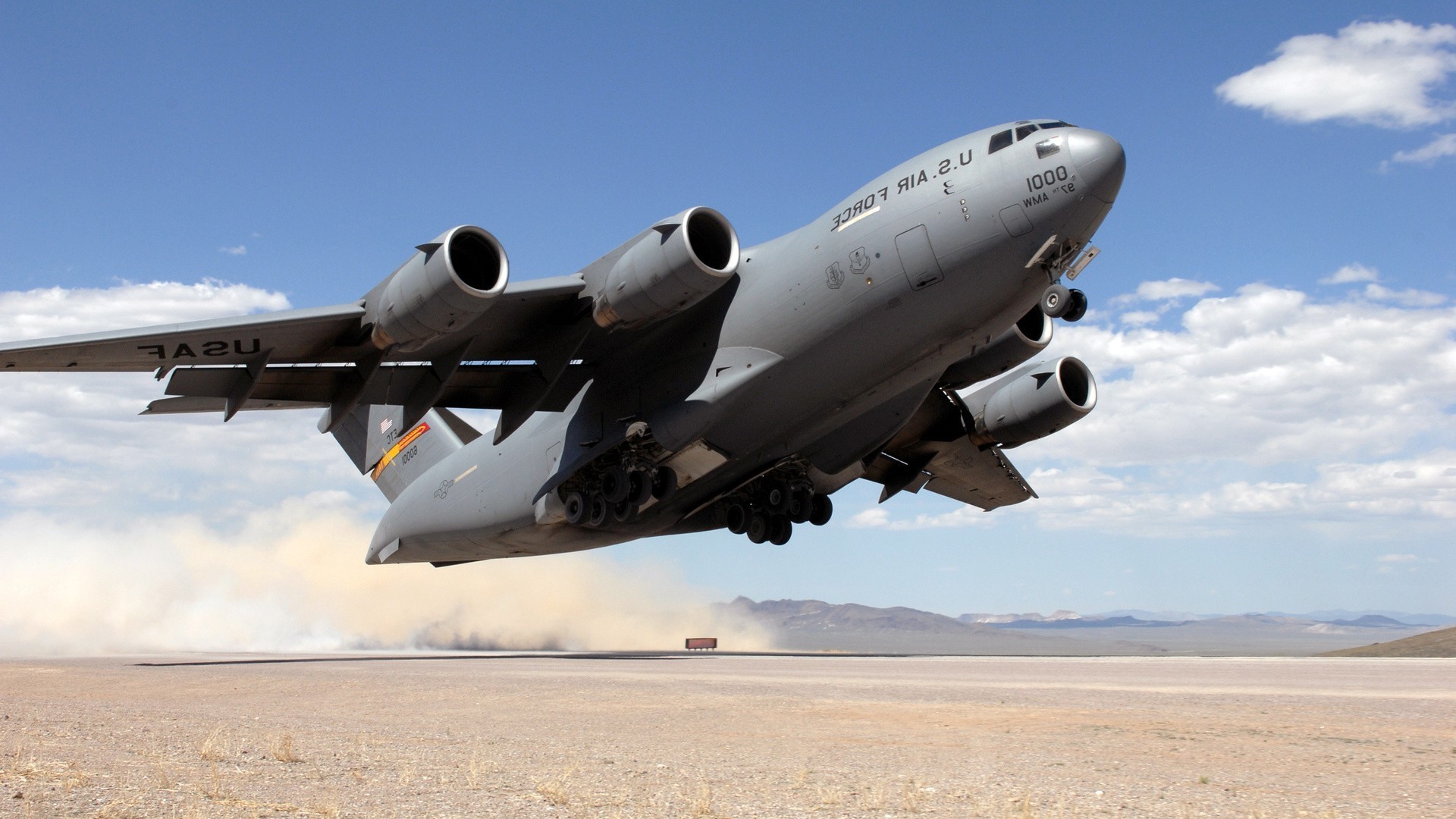 Ein Boeing-Flugzeug fliegt in den Himmel