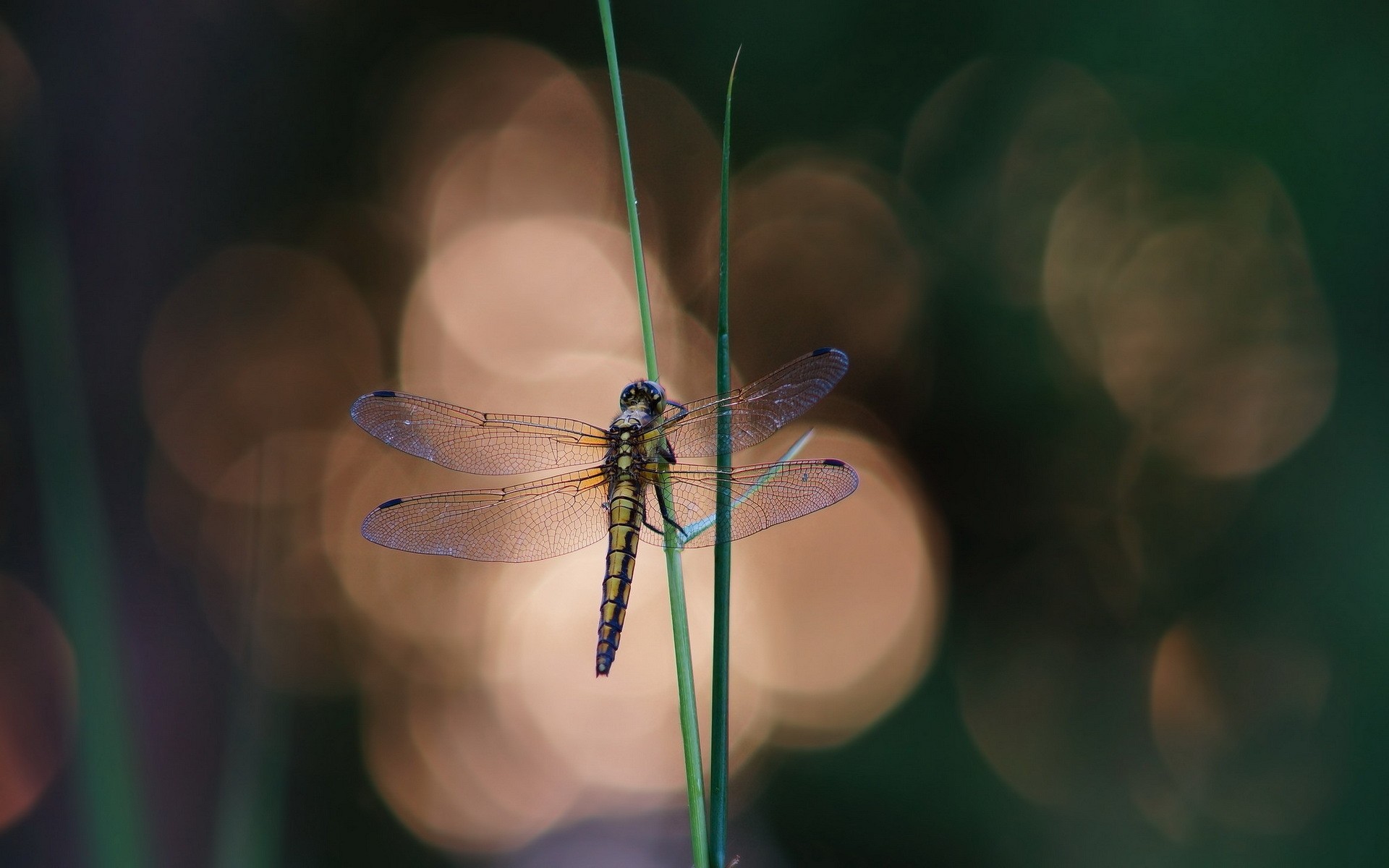 Die Libelle ist müde und bewegt sich auf einen Stumpf