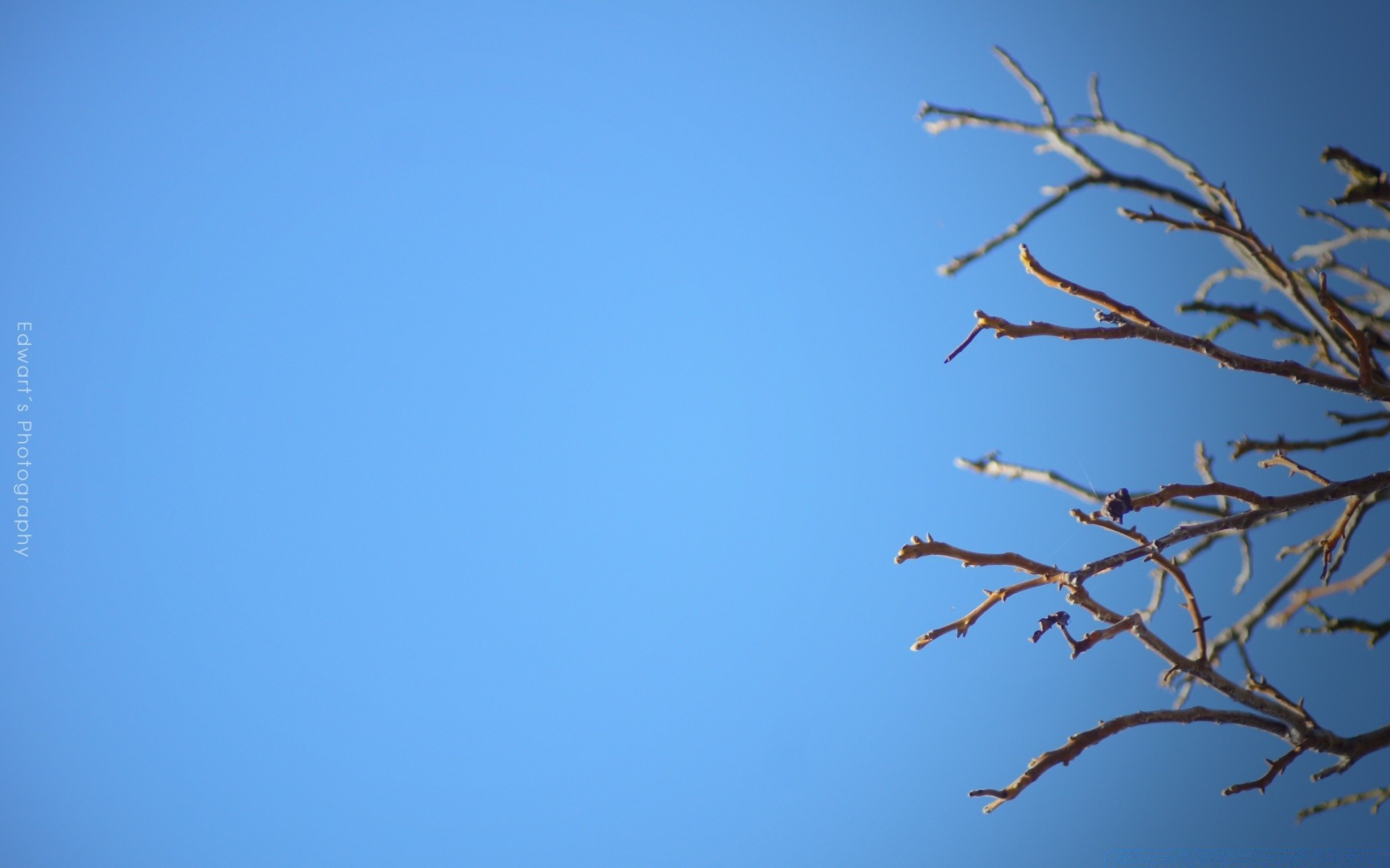Nackte zweige von bäumen auf blauem himmelshintergrund