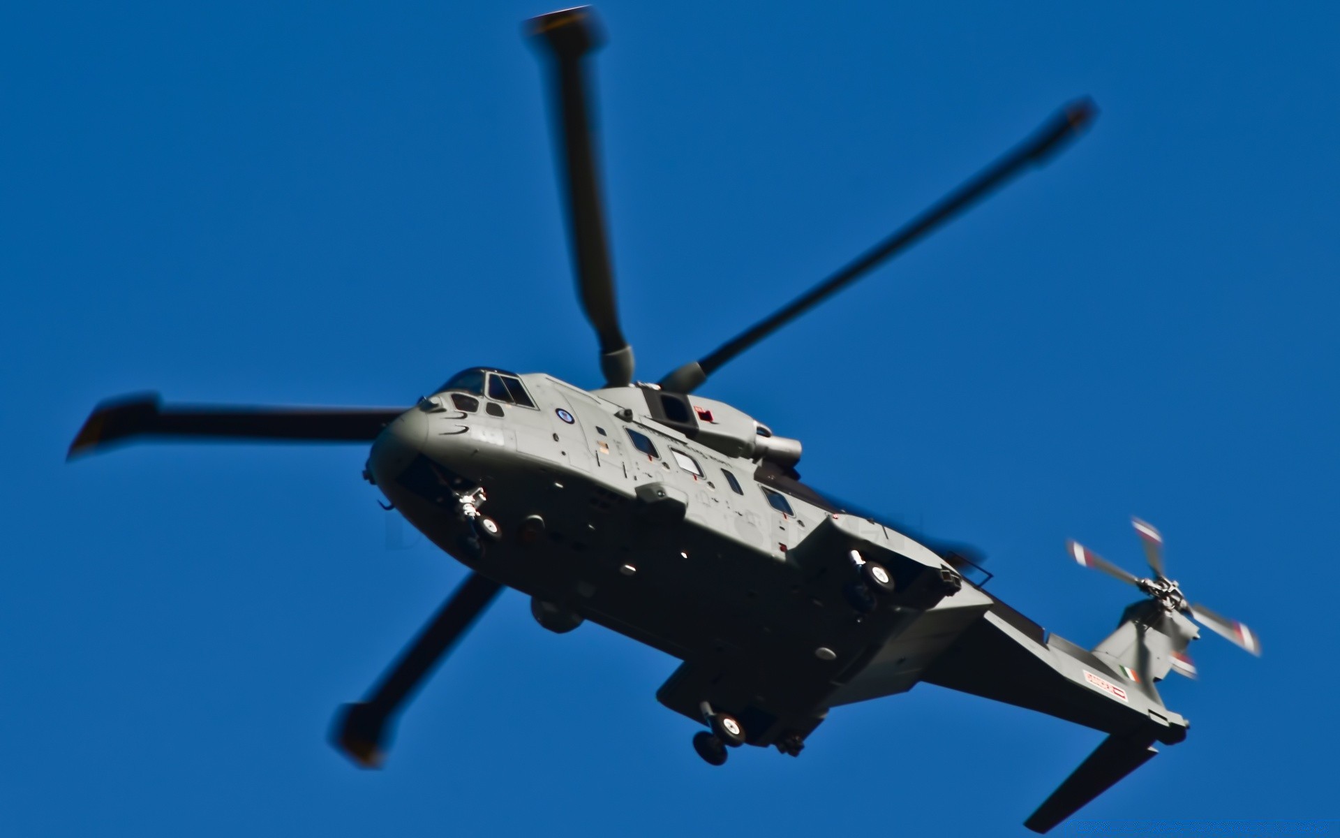 Ein Militärhubschrauber fliegt durch den Himmel