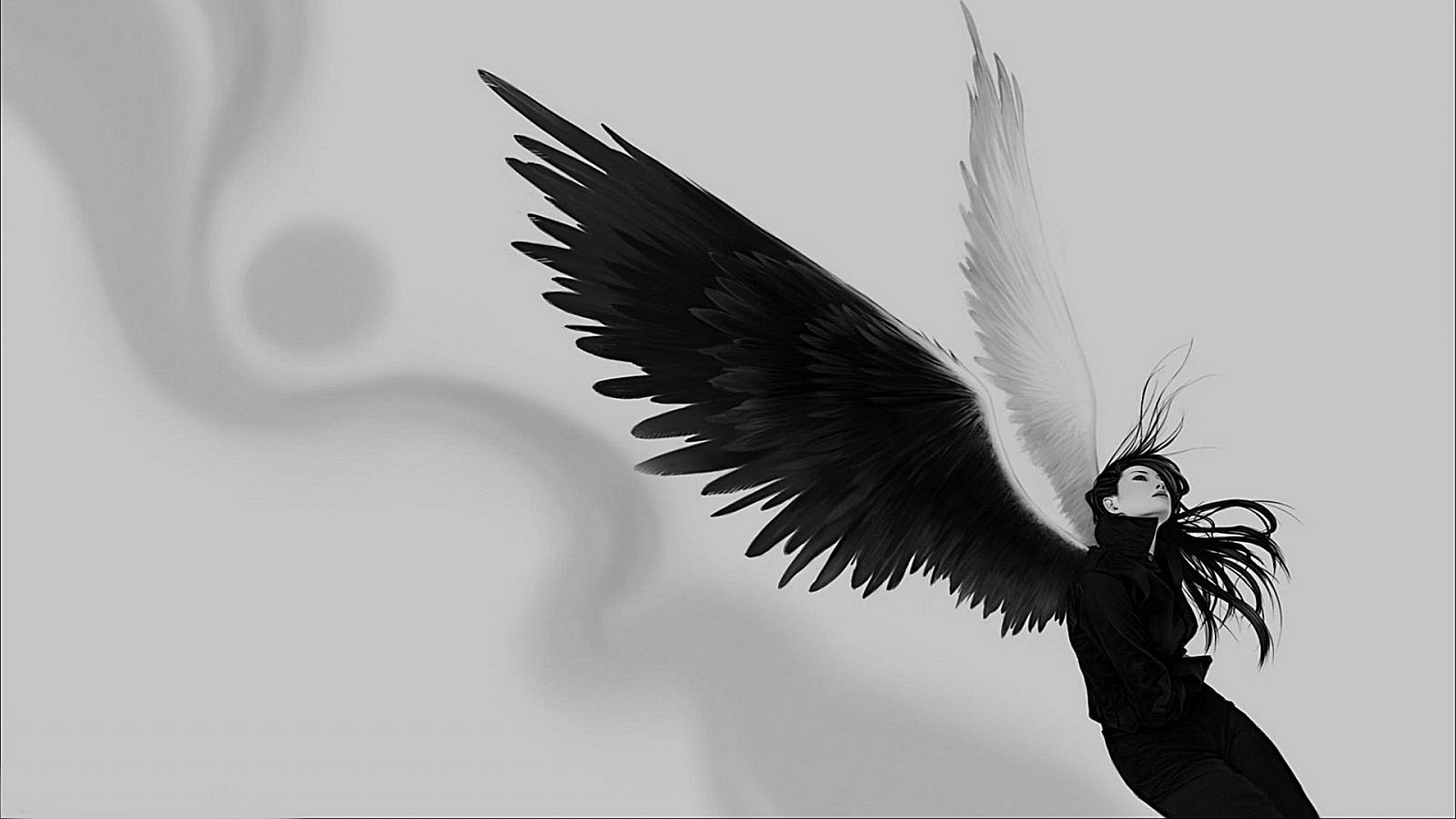 Mädchen Engel mit weißen und schwarzen Flügeln