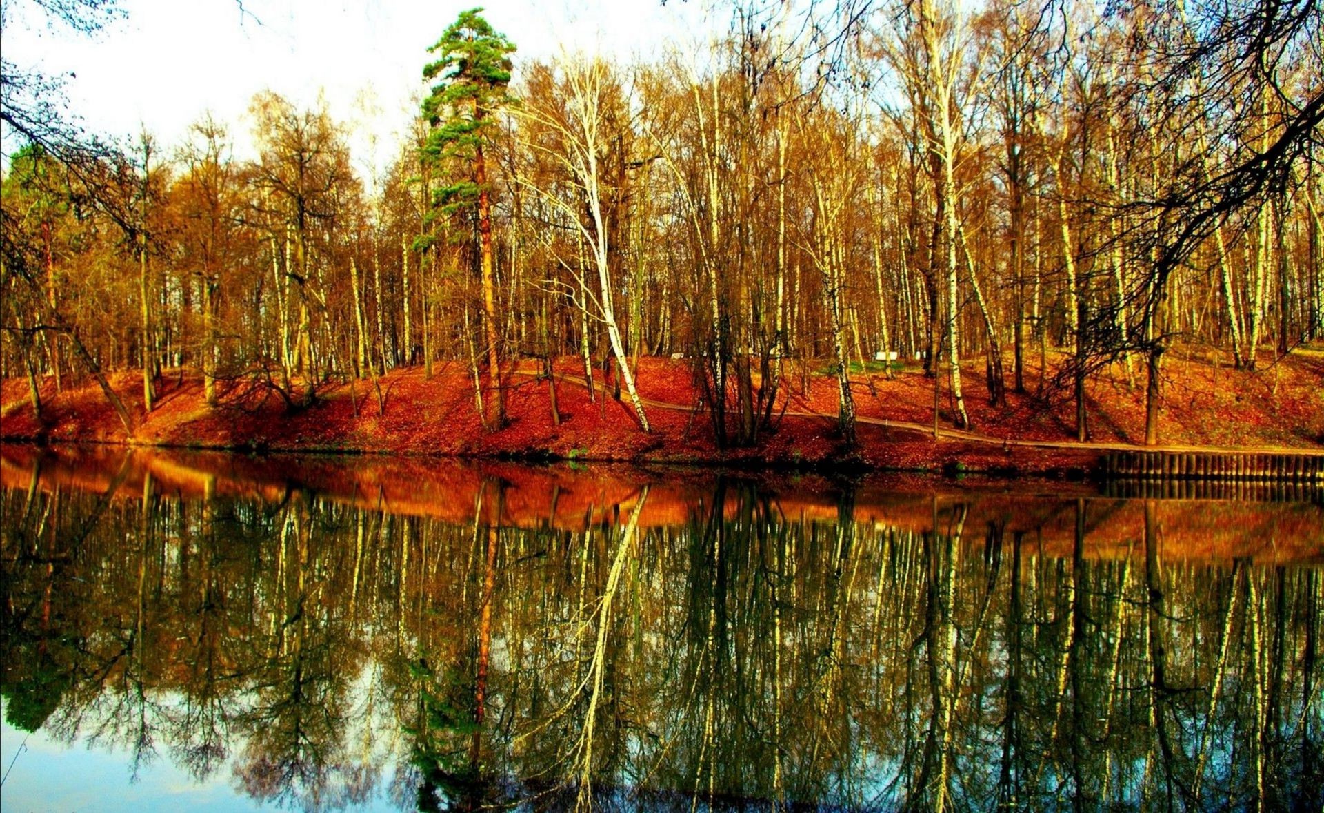 Schöne Landschaft mit ungewöhnlichem Himmel über dem Fluss