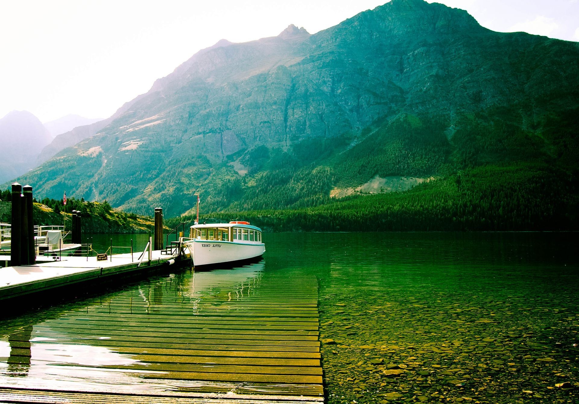 Ein großes Boot schwimmt auf einem nebligen Fluss