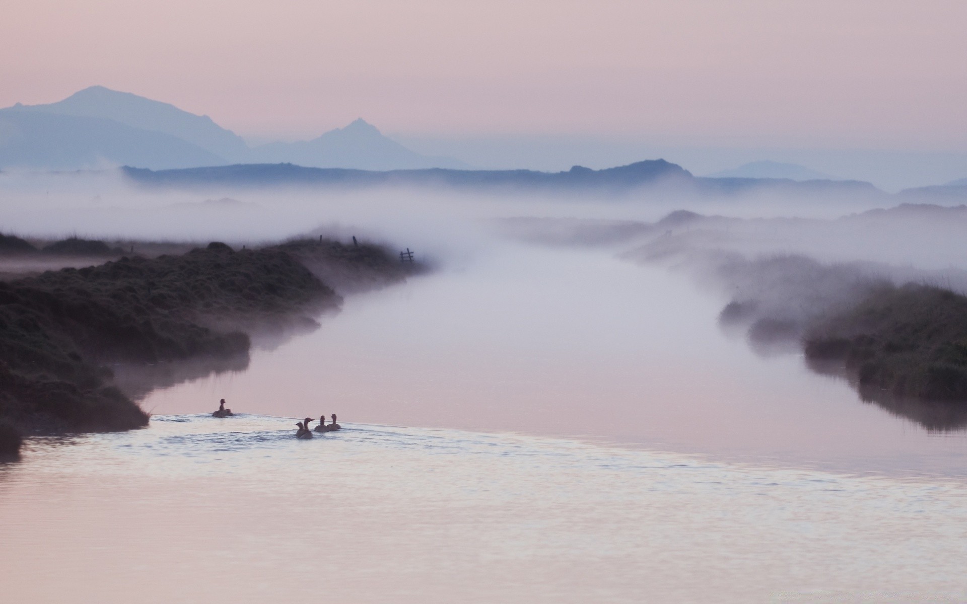 Sonnenuntergang in Photoshop und Fluss gemalt