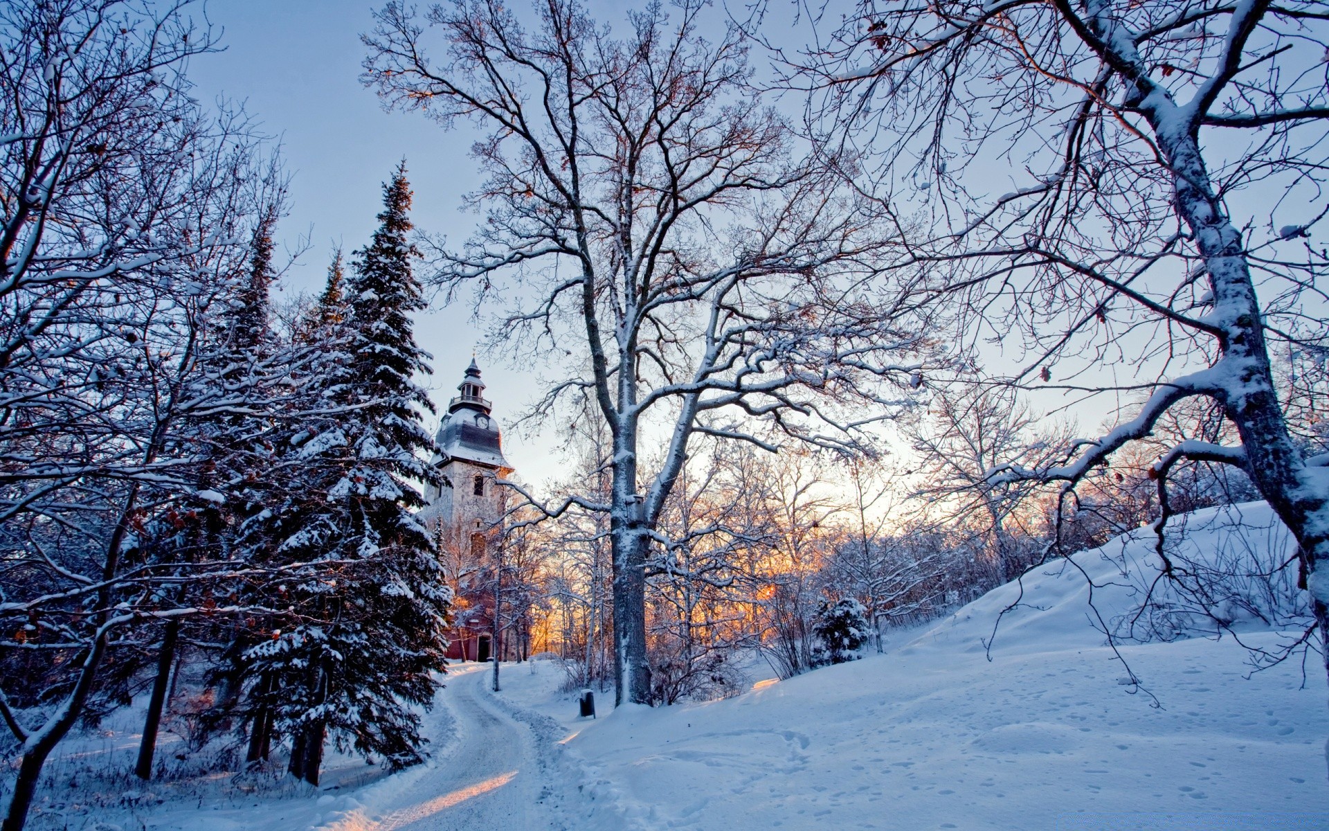 Verschneiter Weg zum alten Schloss