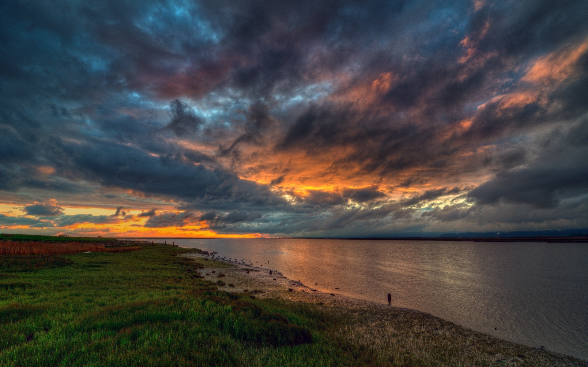Foto eines schönen Sonnenuntergangs über dem Fluss