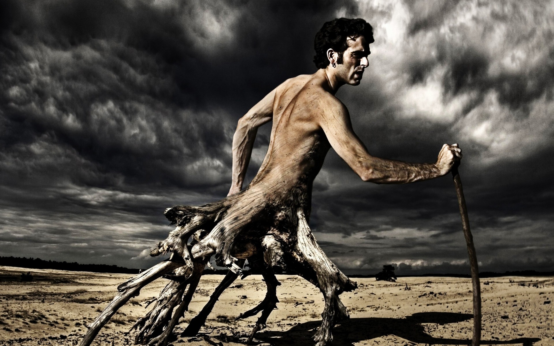 Erwachsener monochromer Mann-Stumpf Fotobearbeitung