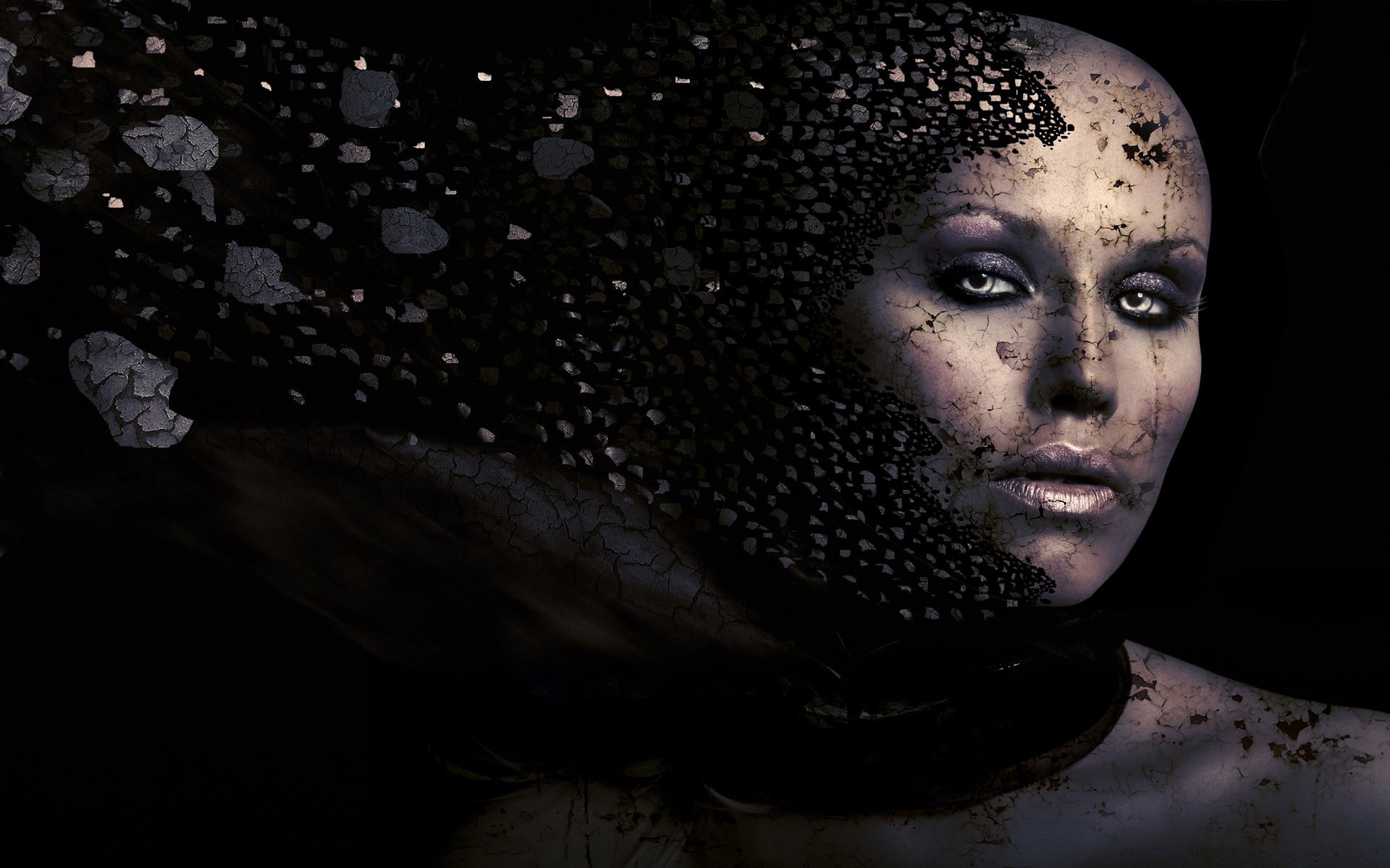 Eine erwachsene Frau auf einem schrecklichen Porträt
