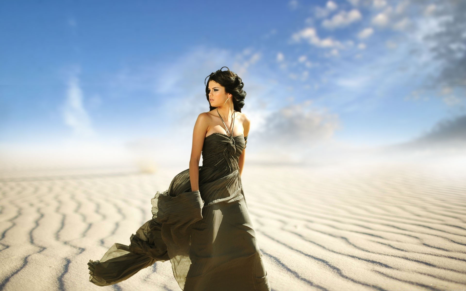 Mädchen in der wüste in einem sich entwickelnden kleidMädchen in der Wüste in einem sich entwickelnden Kleid
