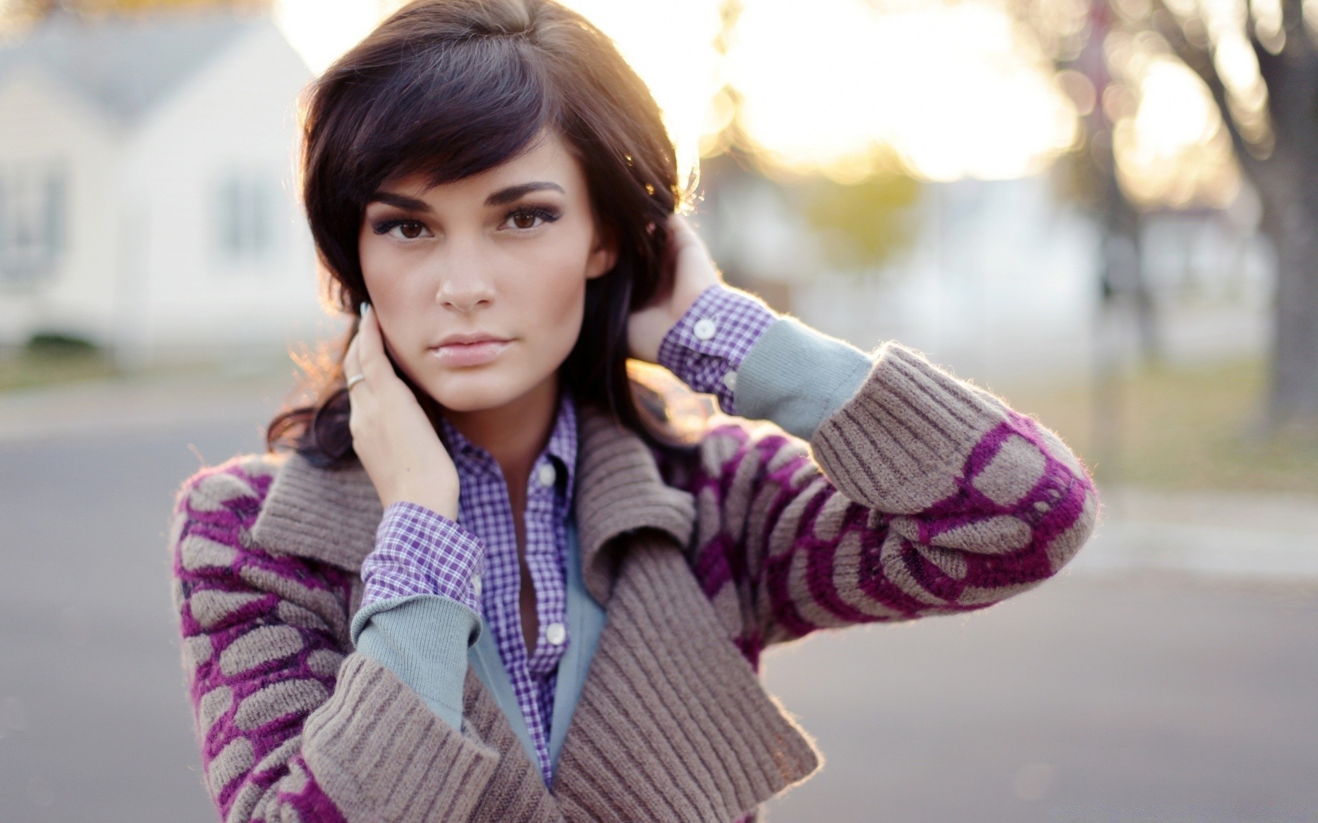 Erwachsenes Mädchen posiert auf der Straße