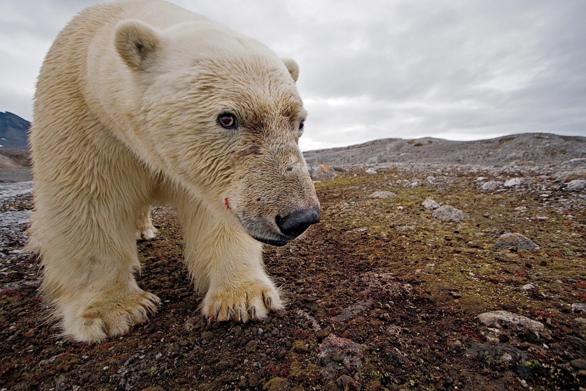 Eisbär mit blutiger Schnauze