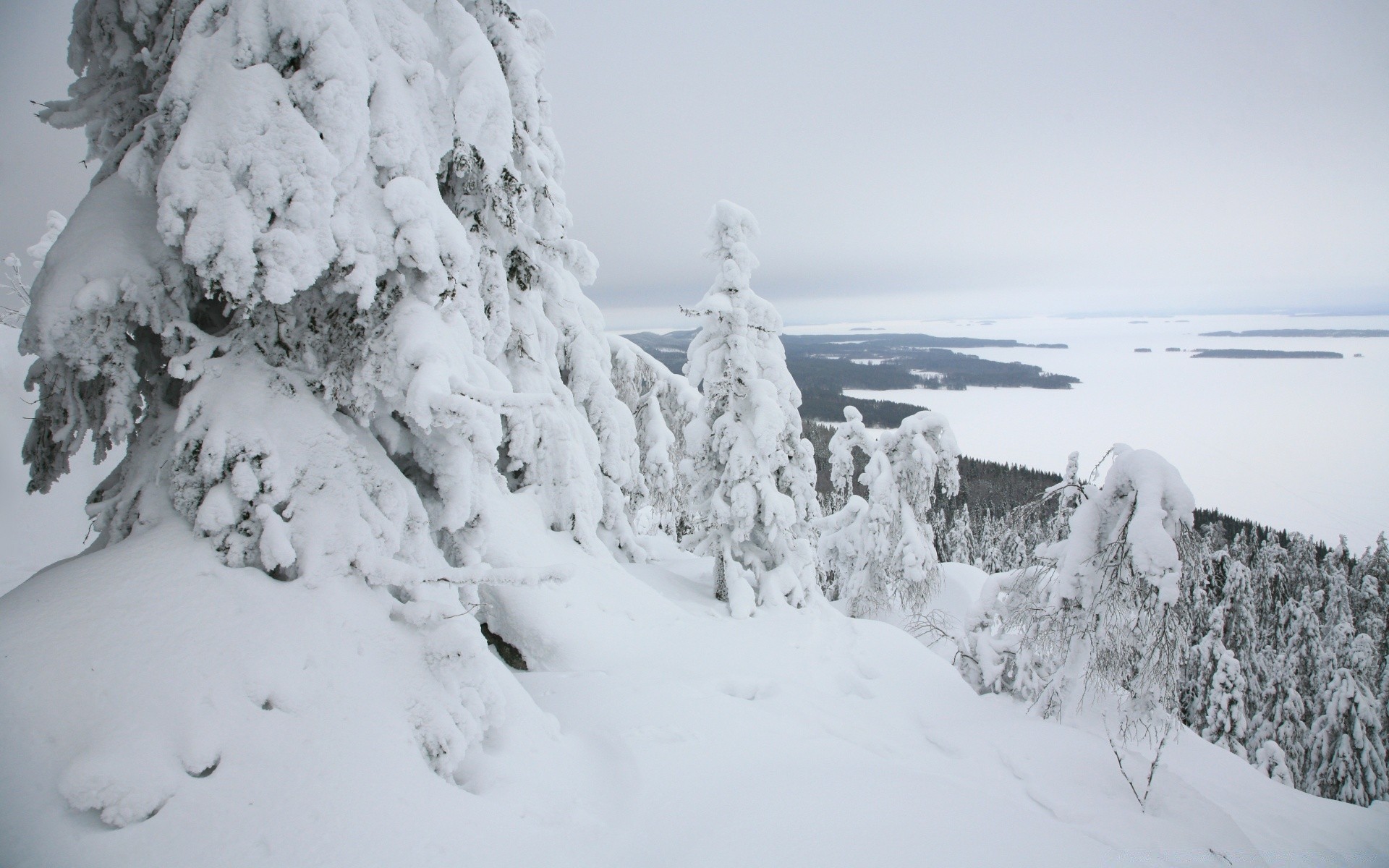 Schneereicher Frost umhüllt Weihnachtsbäume
