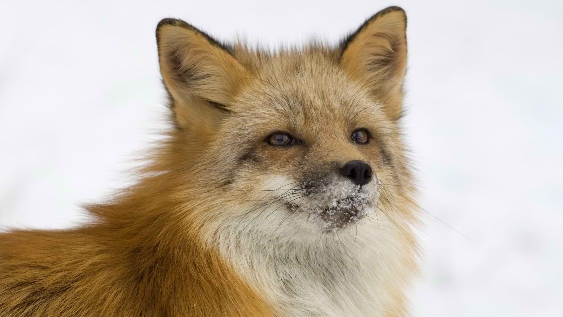 Ein Fuchs auf einem Ball. Schwarzer Hintergrund