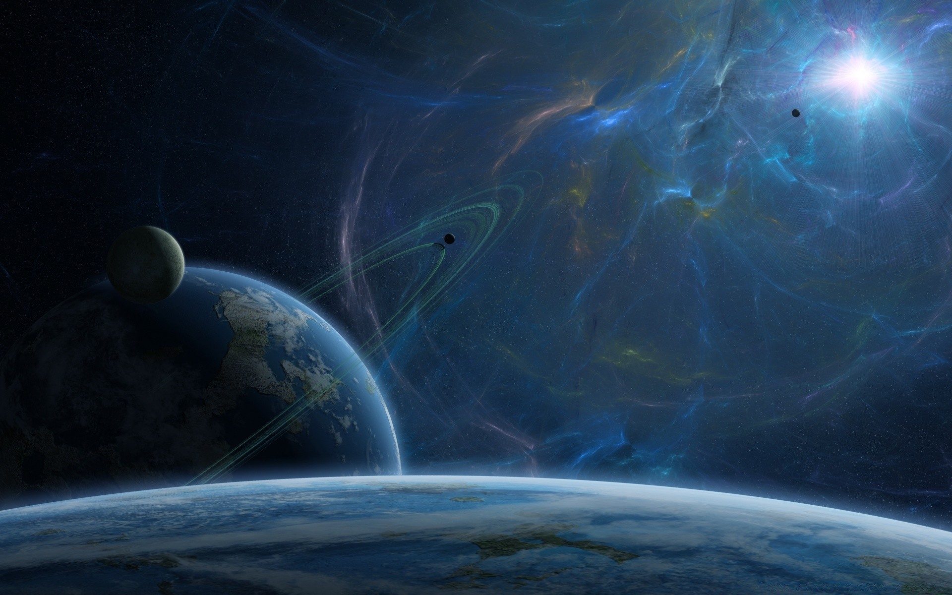 Der beleuchtete Teil des Planeten in der schwarzen Galaxie