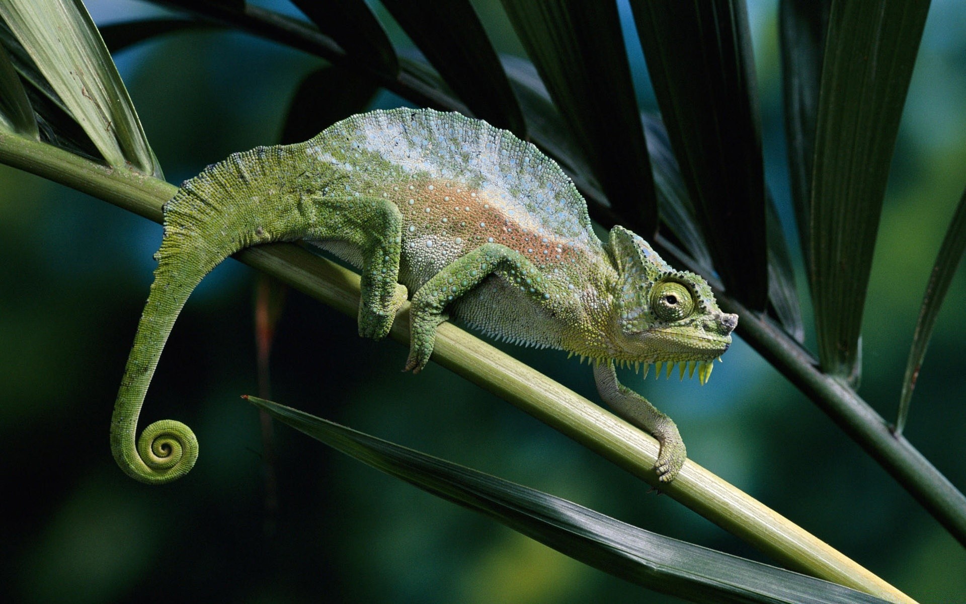 Grünes Hamilion auf dem Hintergrund der Tierwelt