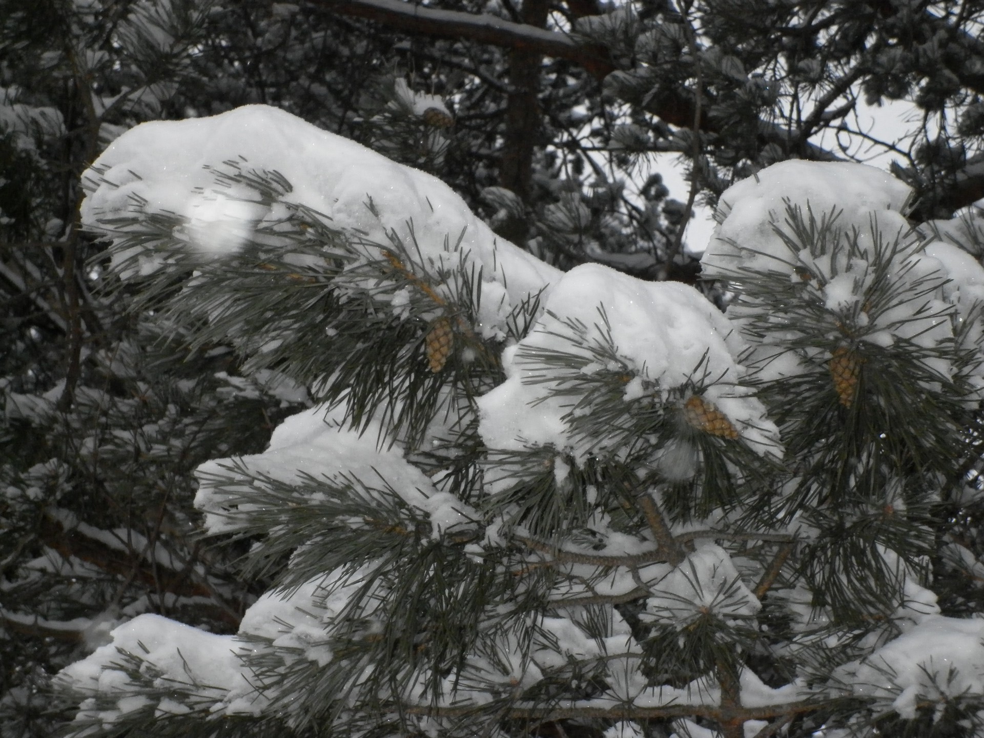 Tannenzweig mit Zapfen mit Schnee bedeckt