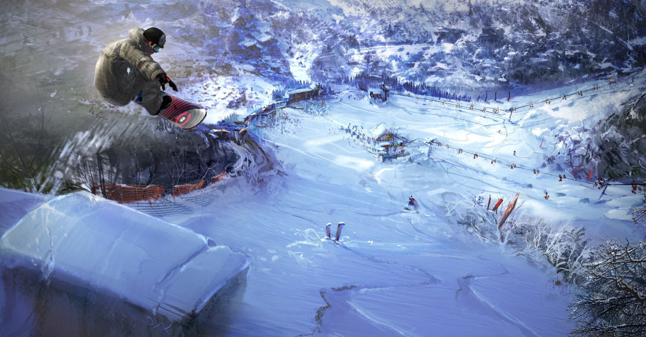 Der Athlet wird im Flug auf einem Snowboard gefilmt
