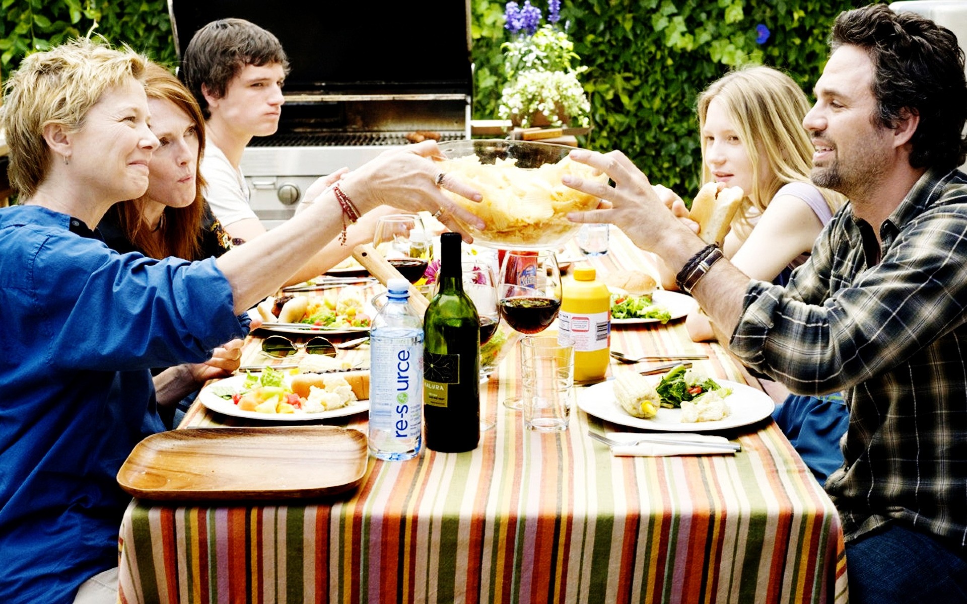 Ein kleiner Außerirdischer sitzt am Tisch und schaut auf den Senf