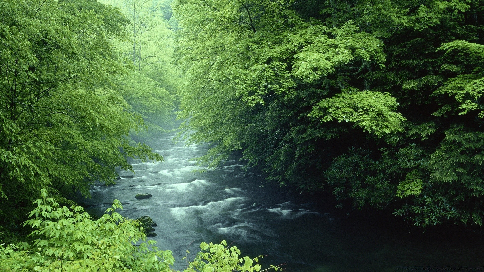 Fluss vor dem hintergrund der berge und grauen wolkenFluss vor dem Hintergrund der Berge und grauen Wolken