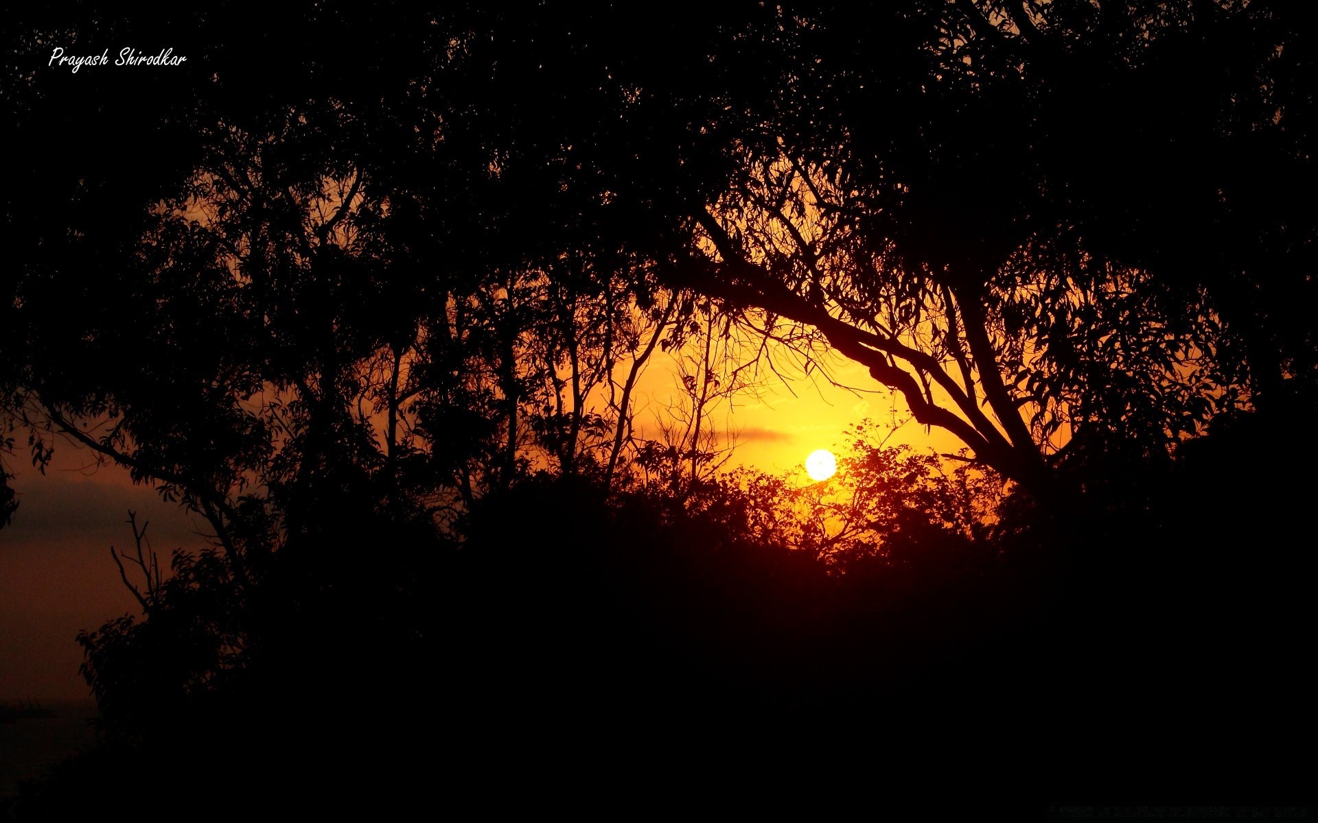 Silhouette - Baum auf dem Hintergrund der Landschaft am Himmel