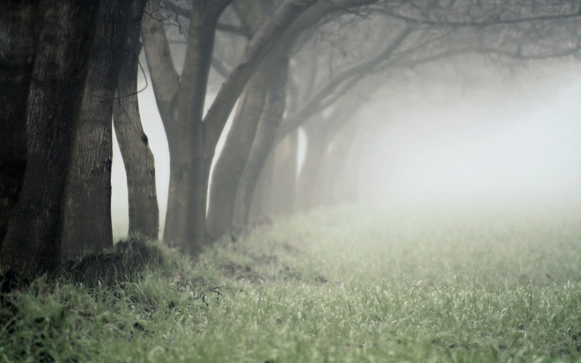 Neblige landschaft im herbst auf dem hintergrund der bäumeNeblige Landschaft im Herbst auf dem Hintergrund der Bäume