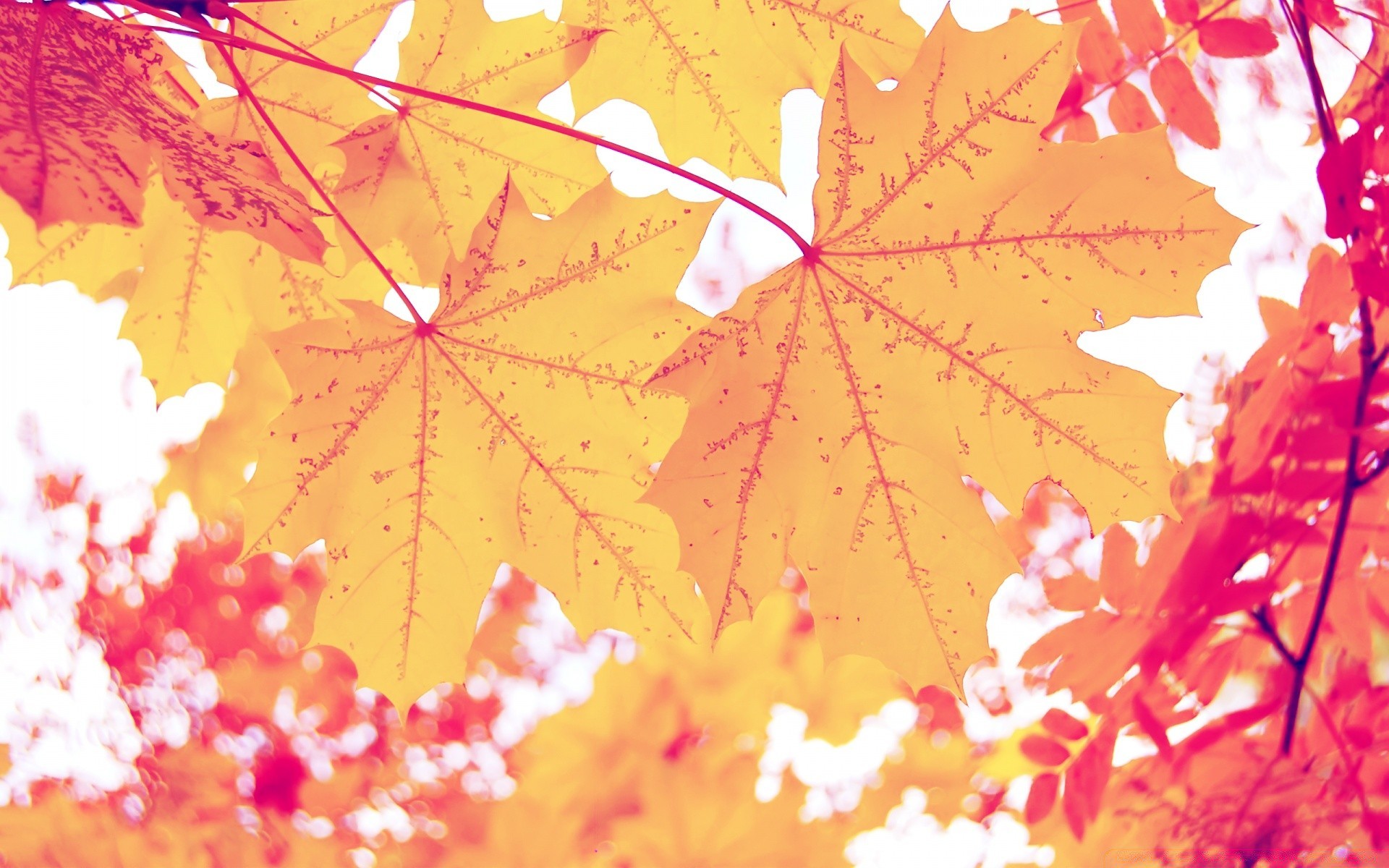 Gelbe und rote Ahornblätter im Sonnenlicht
