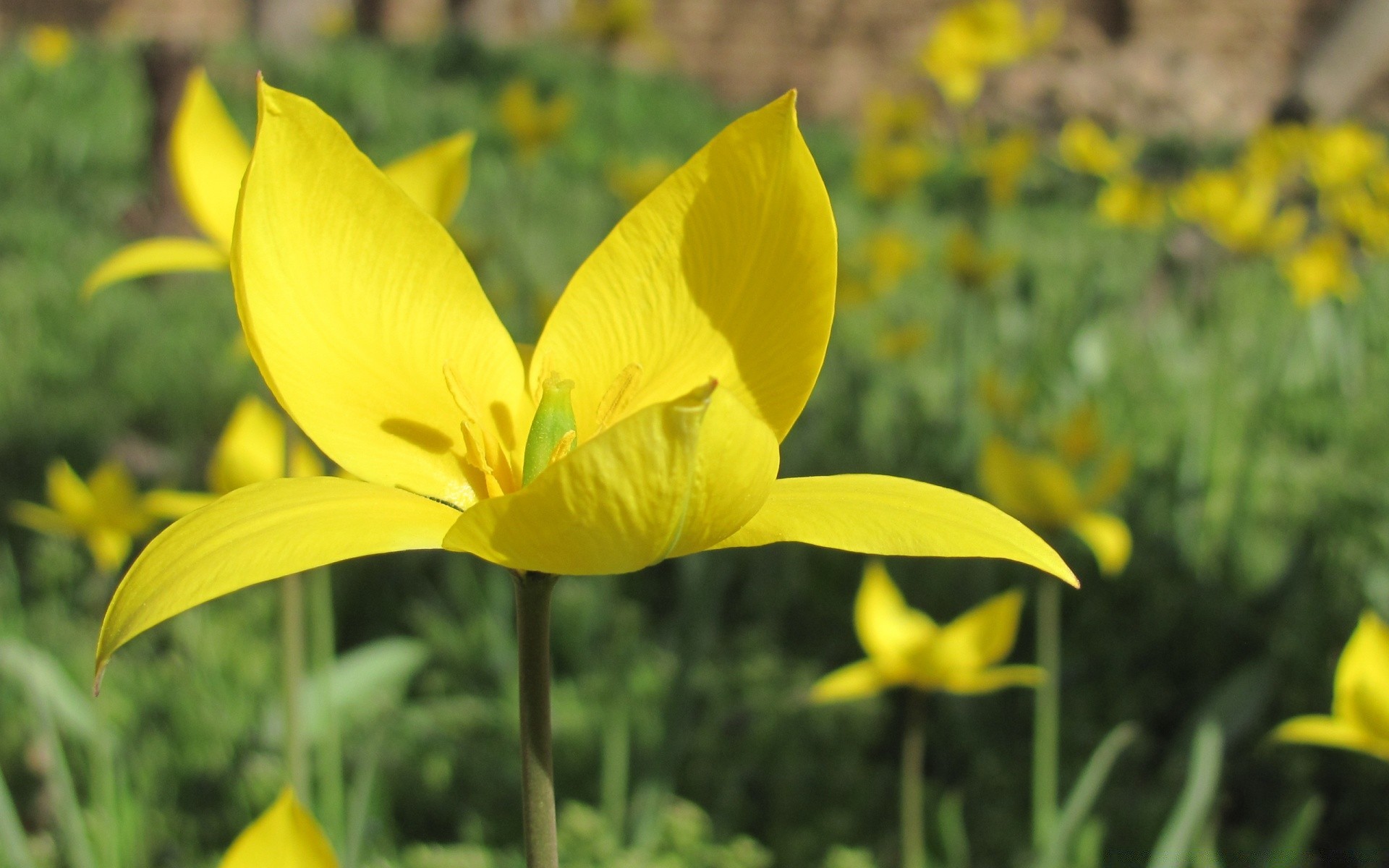 Leuchtend gelbe Blumen auf grünem Hintergrund