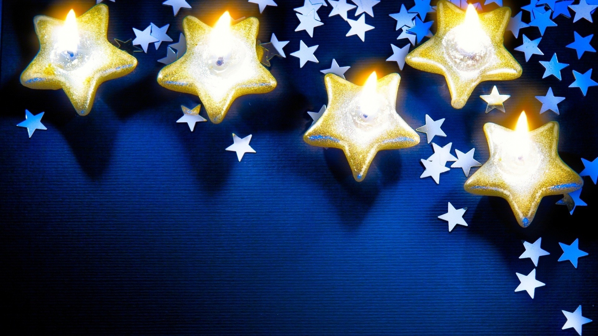Goldene Sternkerzen auf blauem Hintergrund