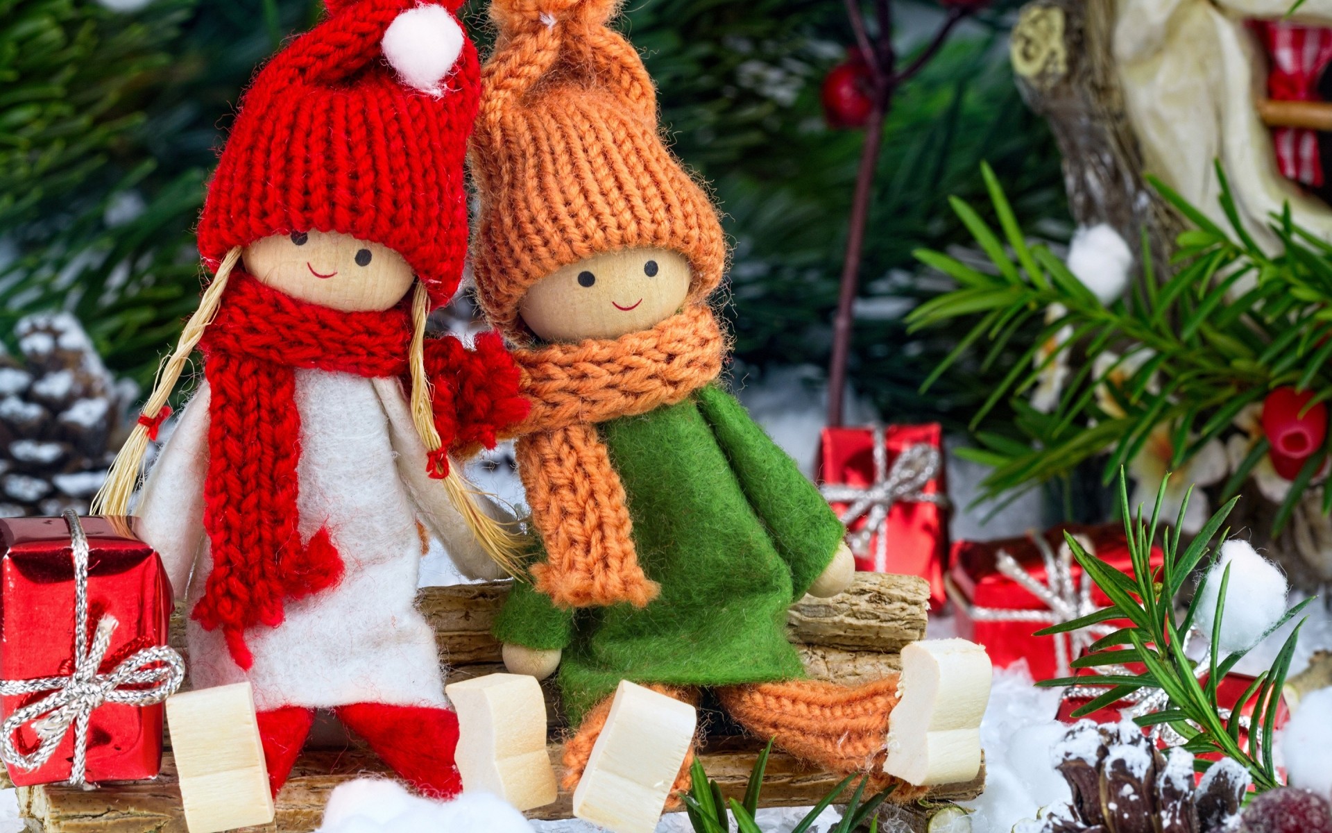 Ein Weihnachtsbild mit einem Mädchen und einem Geschenk