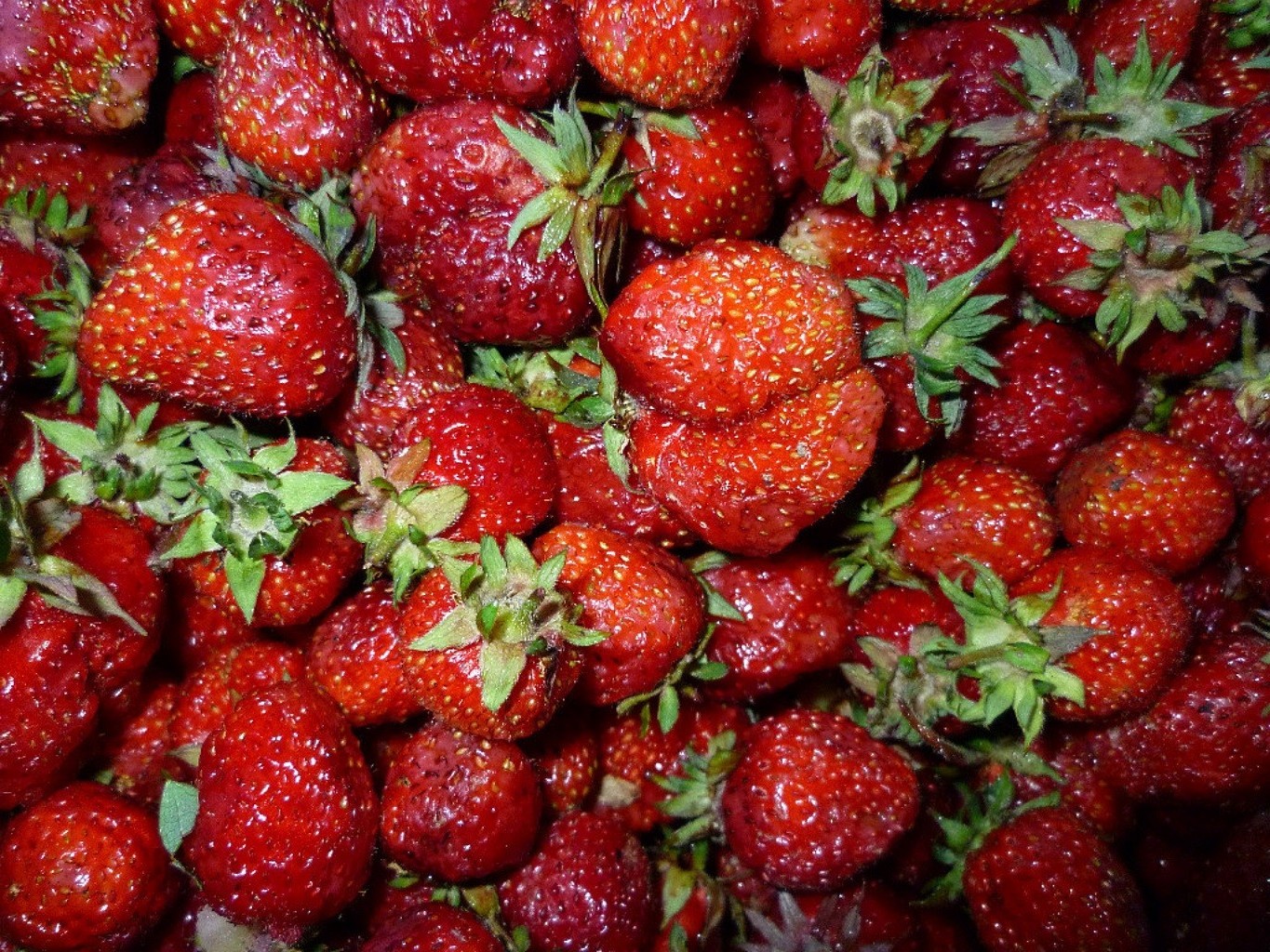 Erdbeeren in einer Tasse auf blauem Hintergrund