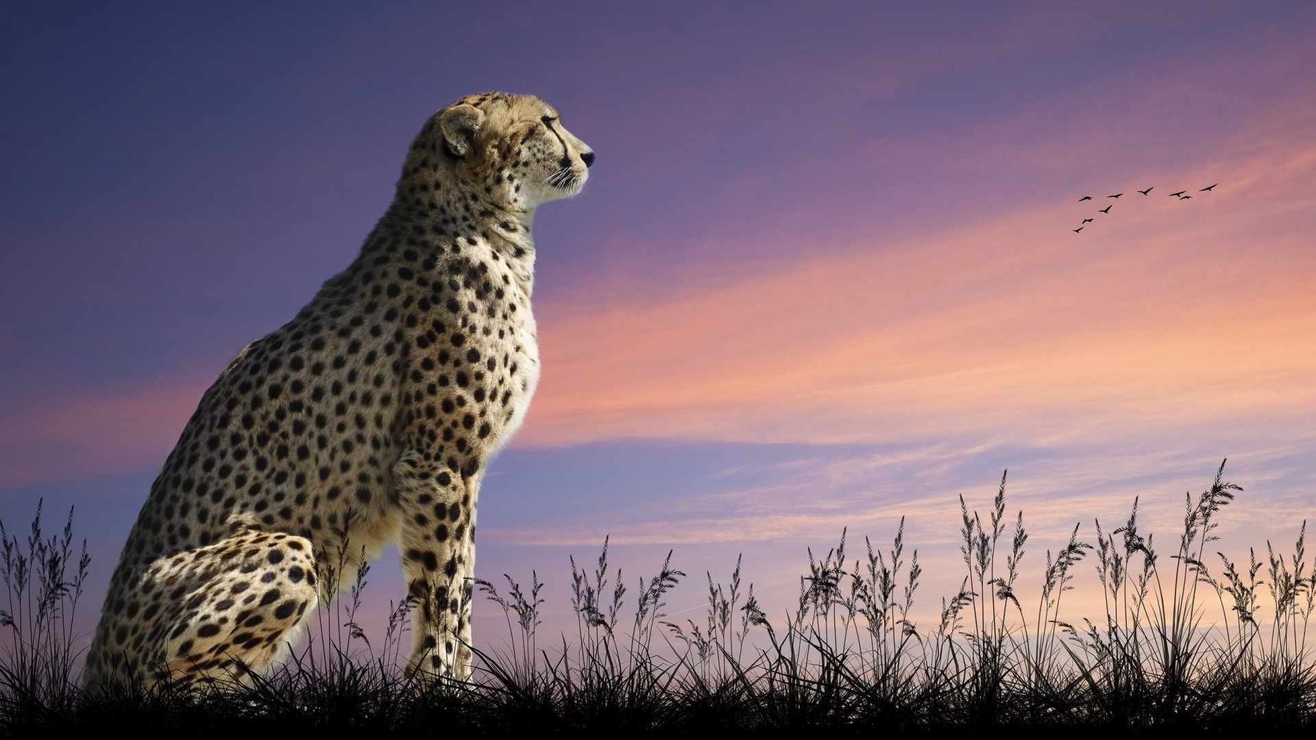 Gepard vor dem Hintergrund des Sonnenuntergangs