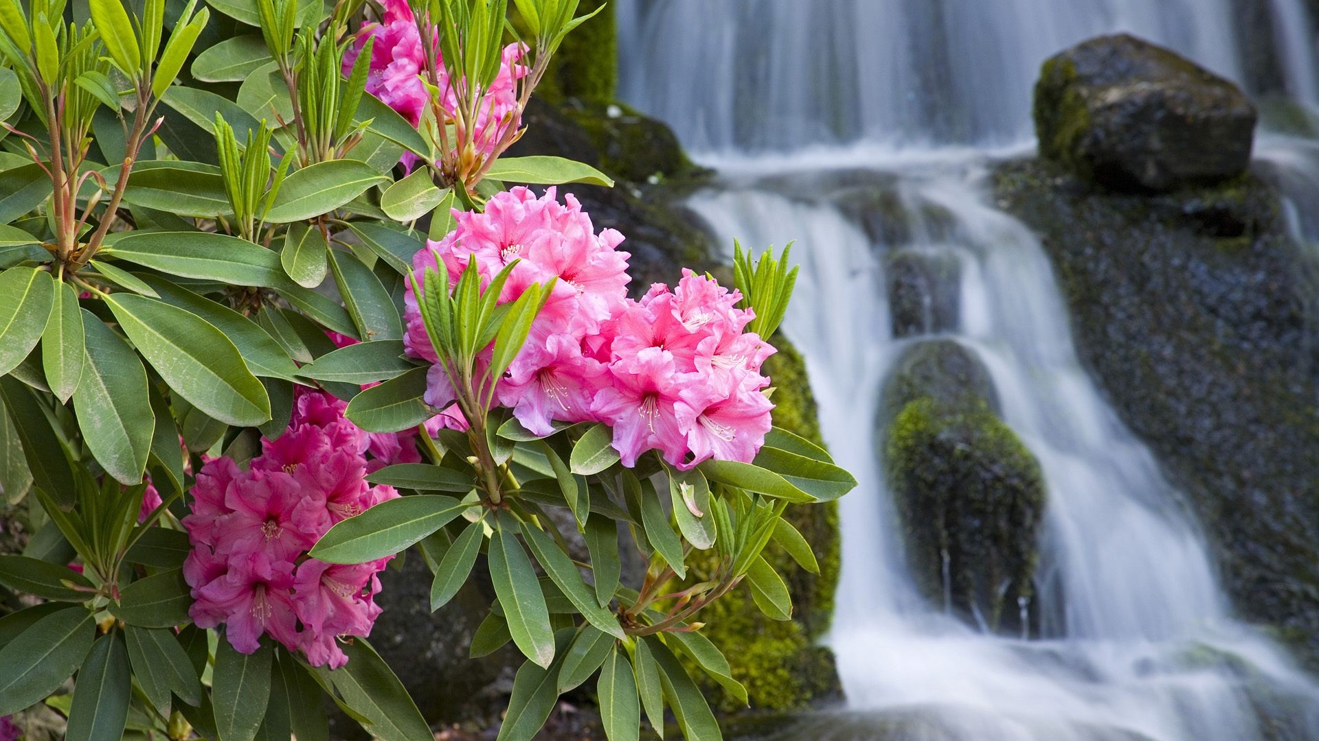 Wasserfall auf rosa Blumen Hintergrund