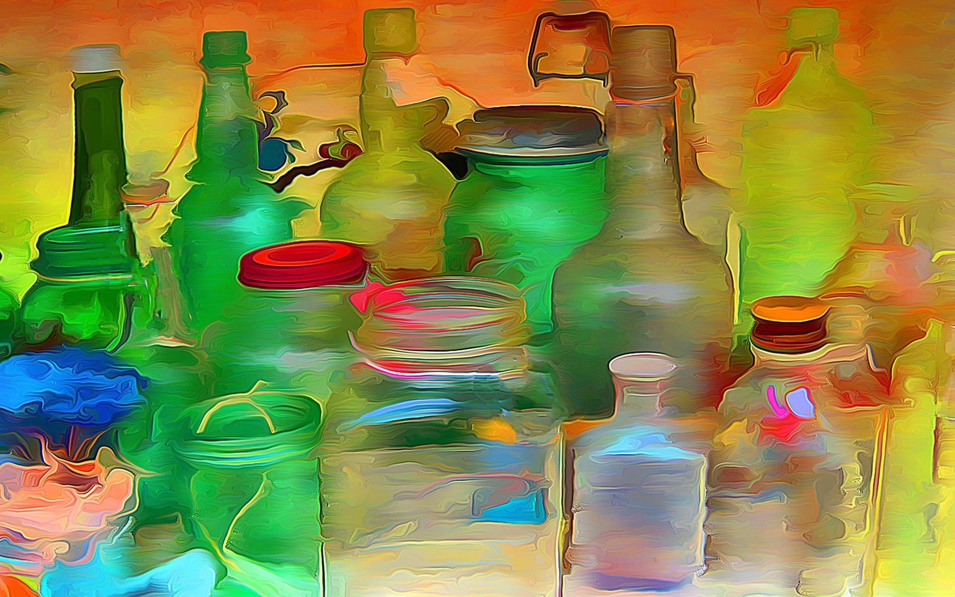Das Muster von Behältern und Flaschen ist verschwommen