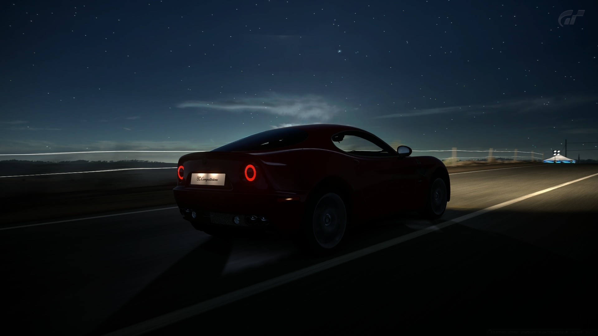 Sportliches Grün mit orangefarbenem Auto in der Nacht