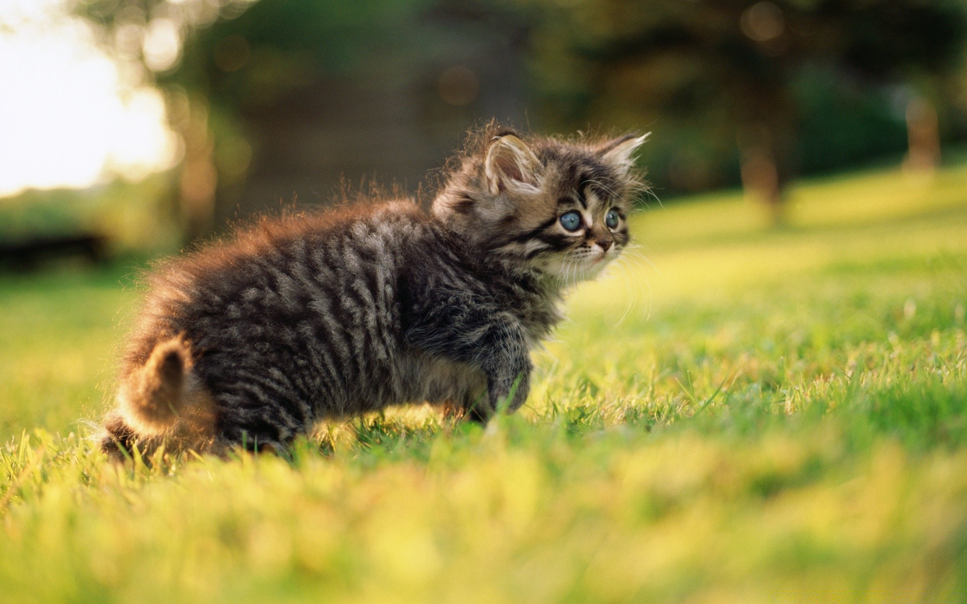 Nettes Kätzchen geht auf dem Gras spazieren