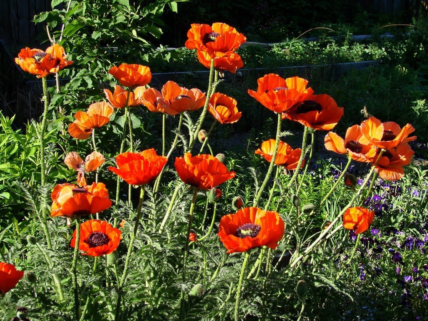 Rote Mohnblumen auf grünem Gras Hintergrund
