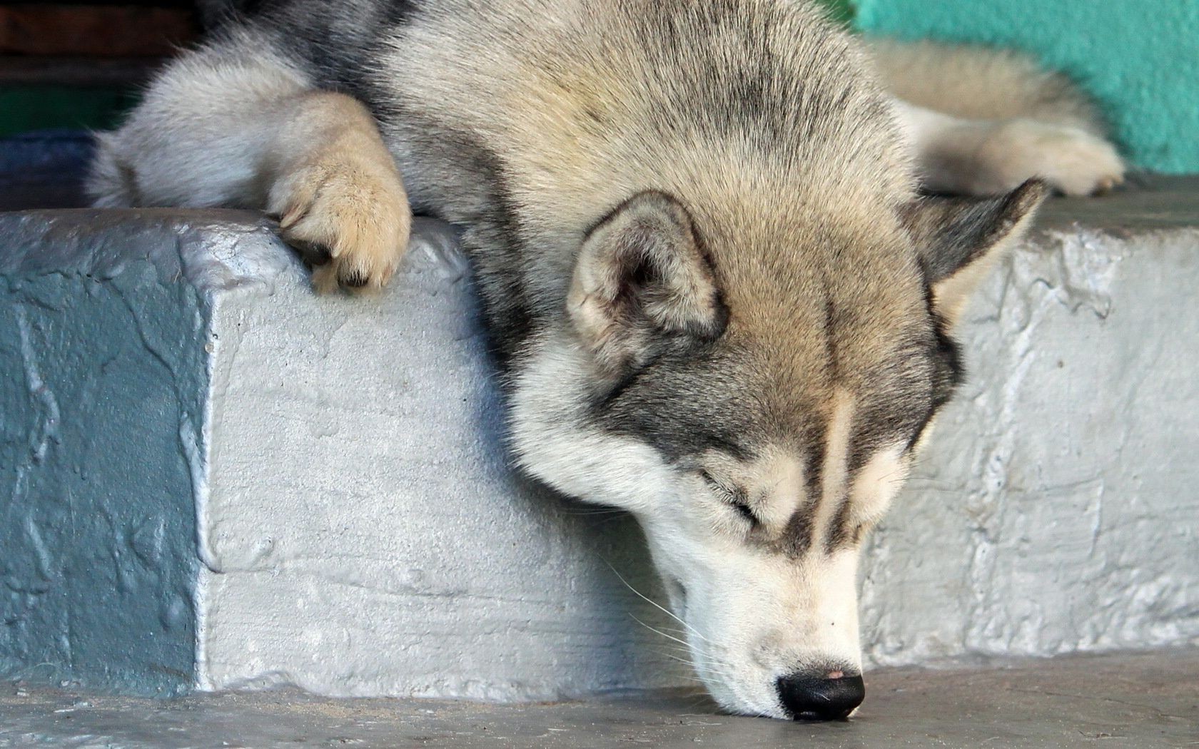 Zwei Wölfe stehen neben dem Skelett eines Tieres