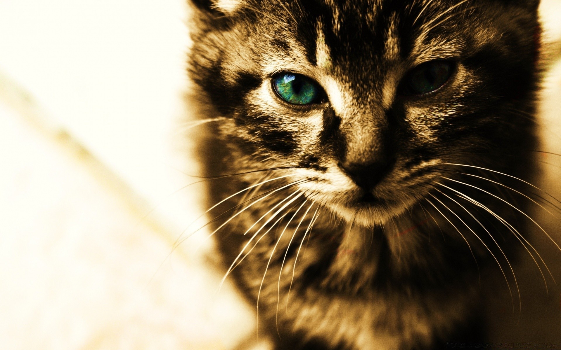Eine schnurrbärtige Katze schaut direkt in die Kamera